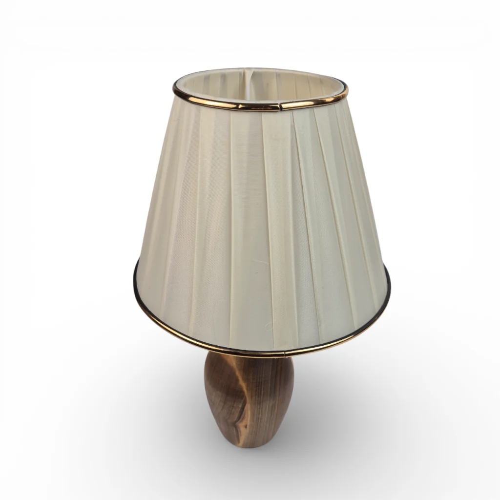 آباژور گلدانی! شباهت پایه چوبی محصول به گلدان باعث شده که به این اسم شناخته شود. شید آباژور از جنس پارچه و در 4 طرح موجود است که به سلیقه شما ارسال می شود. اقلام برقی مصرف شده (سیم, سرپیچ,کلید و...) از بهترین متریال موجود در بازار استفاده شده است. ارتفاع پایه 26سانتی متر، قطر تنه 9سانتیمتر, قطر شید 23سانتی متر و ارتفاع شید 17سانتی متر است همچنین ارتفاع کلی محصول پایه با شید 39سانتی متر می شود که با احتساب همه این موارد وزن نهایی محصول 1160گرم است. طول سیم120 سانتی متر که در مسیر سیم کلید پاور قرار گرفته است , منبع تغدیه آن برق شهری 220 ولت است.