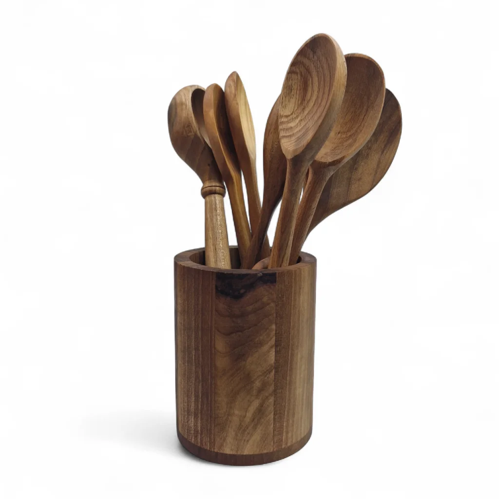 جاقاشقی چوبی مناسب برای نگهداری انواع قاشق . ملاقه و ... درکنار گاز و سینک استفاده می شود. این محصول ساخته شده از جنس گردو به ابعاد 10*10 سانتی متر و ارتفاع 14 سانتی متر میباشد . رنگ کار با رنگ چوب به همراه روغن خوراکی پوشش داده شده است. بسیاری از عزیزان از این محصول به عنوان جا مدادی رومیزی نیز استفاده می کنند.
