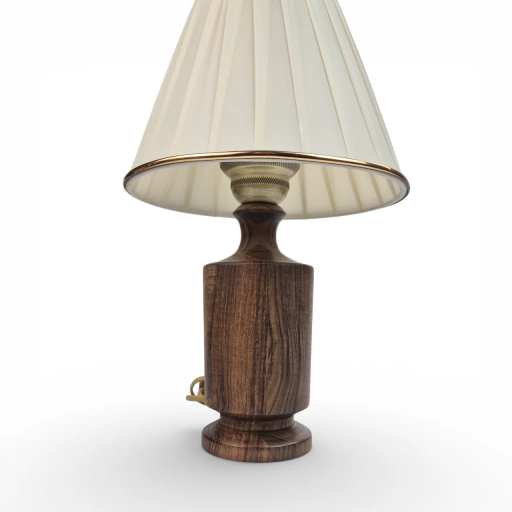 آباژور گلدانی! شباهت پایه چوبی محصول به گلدان باعث شده که به این اسم شناخته شود. شید آباژور از جنس پارچه و در 4 طرح موجود است که به سلیقه شما ارسال می شود. اقلام برقی مصرف شده (سیم, سرپیچ,کلید و...) از بهترین متریال موجود در بازار استفاده شده است. ارتفاع پایه 26سانتی متر، قطر تنه 9سانتیمتر, قطر شید 32 سانتی متر و ارتفاع شید 18سانتی متر است همچنین ارتفاع کلی محصول پایه با شید 39سانتی متر می شود که با احتساب همه این موارد وزن نهایی محصول 1185گرم است. طول سیم120 سانتی متر که در مسیر سیم کلید پاور قرار گرفته است , منبع تغدیه آن برق شهری 220 ولت است.
