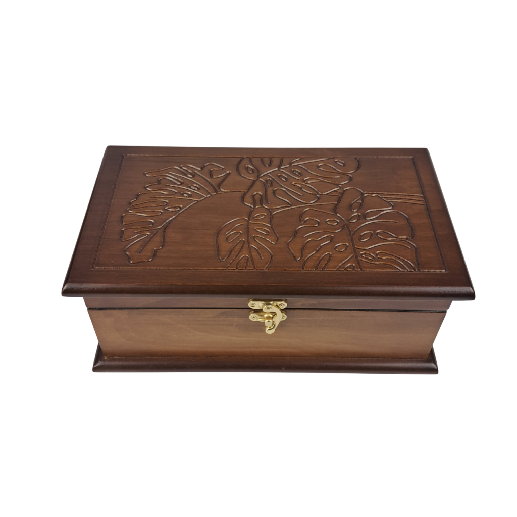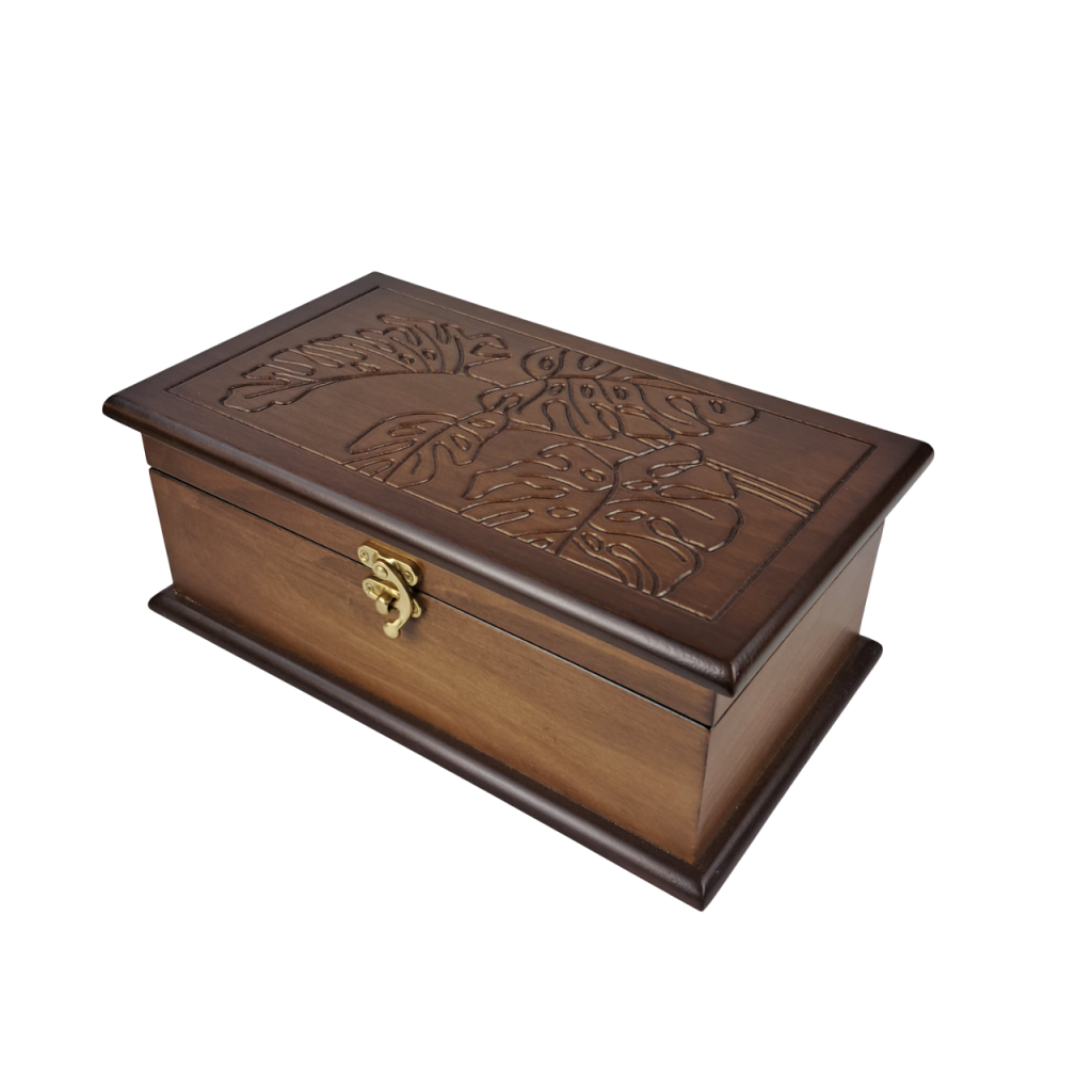 جعبه قاشق و چنگال شرکت تکسازان ترنج با طراحی زیبا و هنرمندانهای ساخته شده که از ام دی اف با روکش طبیعی راش باکیفیت با حکاکی ظریف طرح برگ درخت انجیر بر روی درب آن بهره میبرد. این جعبه با پوشش پلی استر و رنگآمیزی دستساز، جلوهای کلاسیک و لوکس به دکوراسیون منزل میبخشد و برای نگهداری ایمن و مرتب قاشق و چنگالها مناسب است. قفل و لولاهای طلاییرنگ آن، علاوه بر کارایی، به استحکام و جذابیت بصری محصول افزوده است. این جعبه با ابعاد مناسب و فضای داخلی جادار، انتخابی ایدهآل برای استفاده روزمره یا هدیه دادن محسوب میشود. درج لوگو و تغییر سایز با سفارش در تیراژ امکان پذیر است.