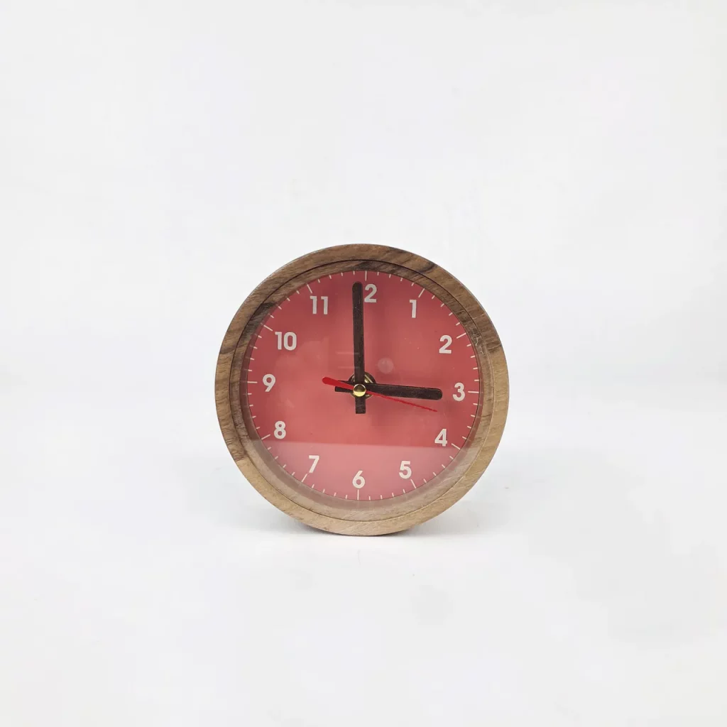 ساعت چوبی رومیزی گرد، محصولی شیک و کاربردی از محصولات چوبی، با قاب چوبی طبیعی و صفحه قرمز جذاب، دکوراسیون میز کار یا کنار تخت را به سطح جدیدی از زیبایی میرساند. این دکوری چوبی با موتور آرامگرد و شیشه محافظ، زمان را بهصورت بیصدا نمایش میدهد و با قطر مناسب، فضایی کوچک را بدون اشغال زیاد، غنی میکند.