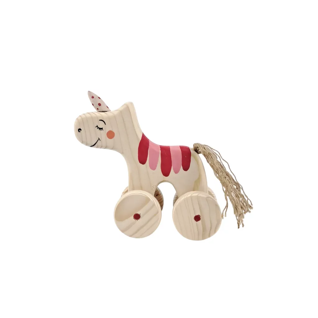 این عروسک دوستداشتنی با طراحی اسب شاخدار، از چوب طبیعی و باکیفیت ساخته شده است. چرخهای روان آن، بازی را برای کودک آسان و لذتبخش میکند. با رنگآمیزی ایمن و طراحی خندان، حس شادی و امنیت را منتقل میکند. ایدهآل برای تقویت مهارتهای حرکتی و تخیل کودک. مناسب برای هدیهای خاص و دوستداشتنی در مناسبتهای مختلف.