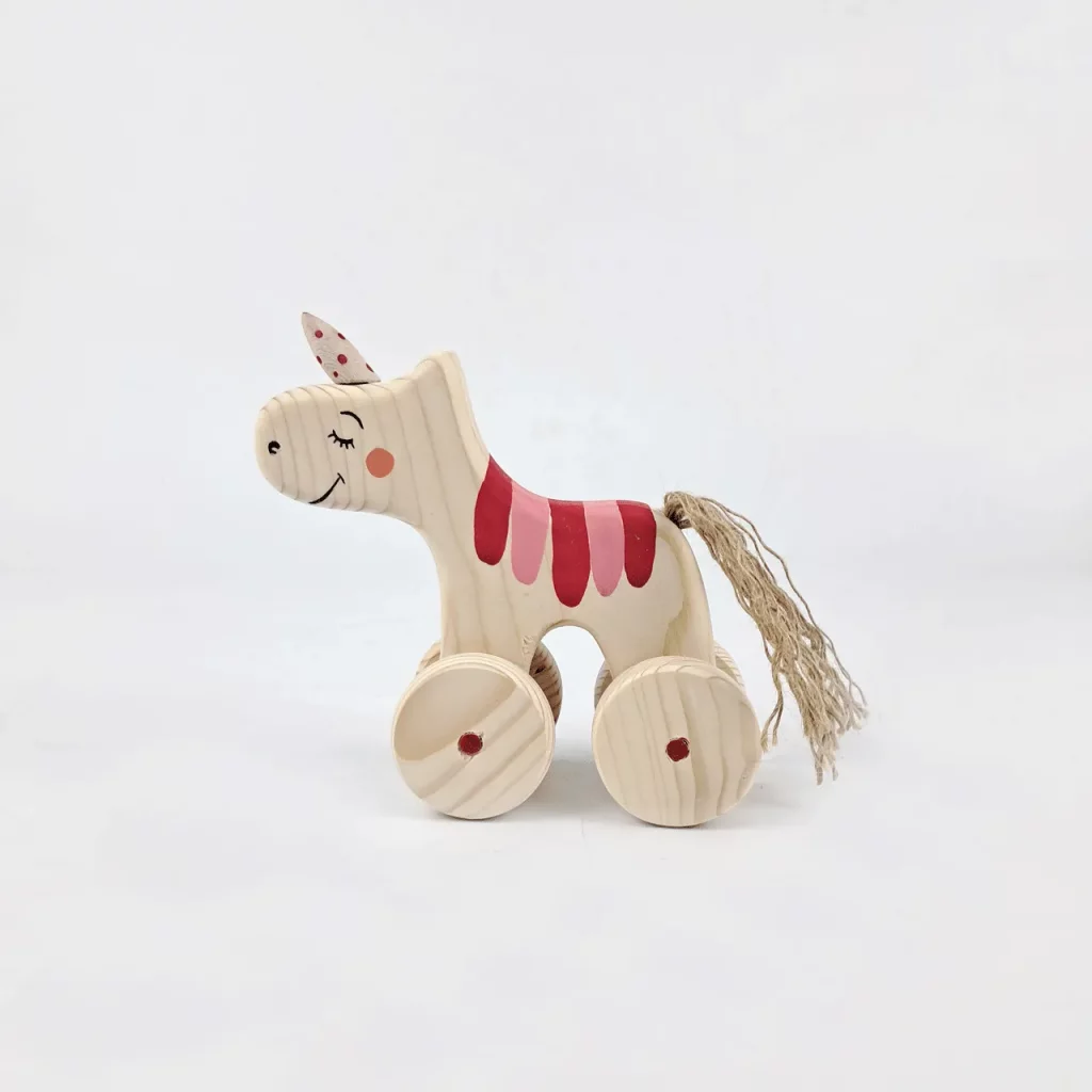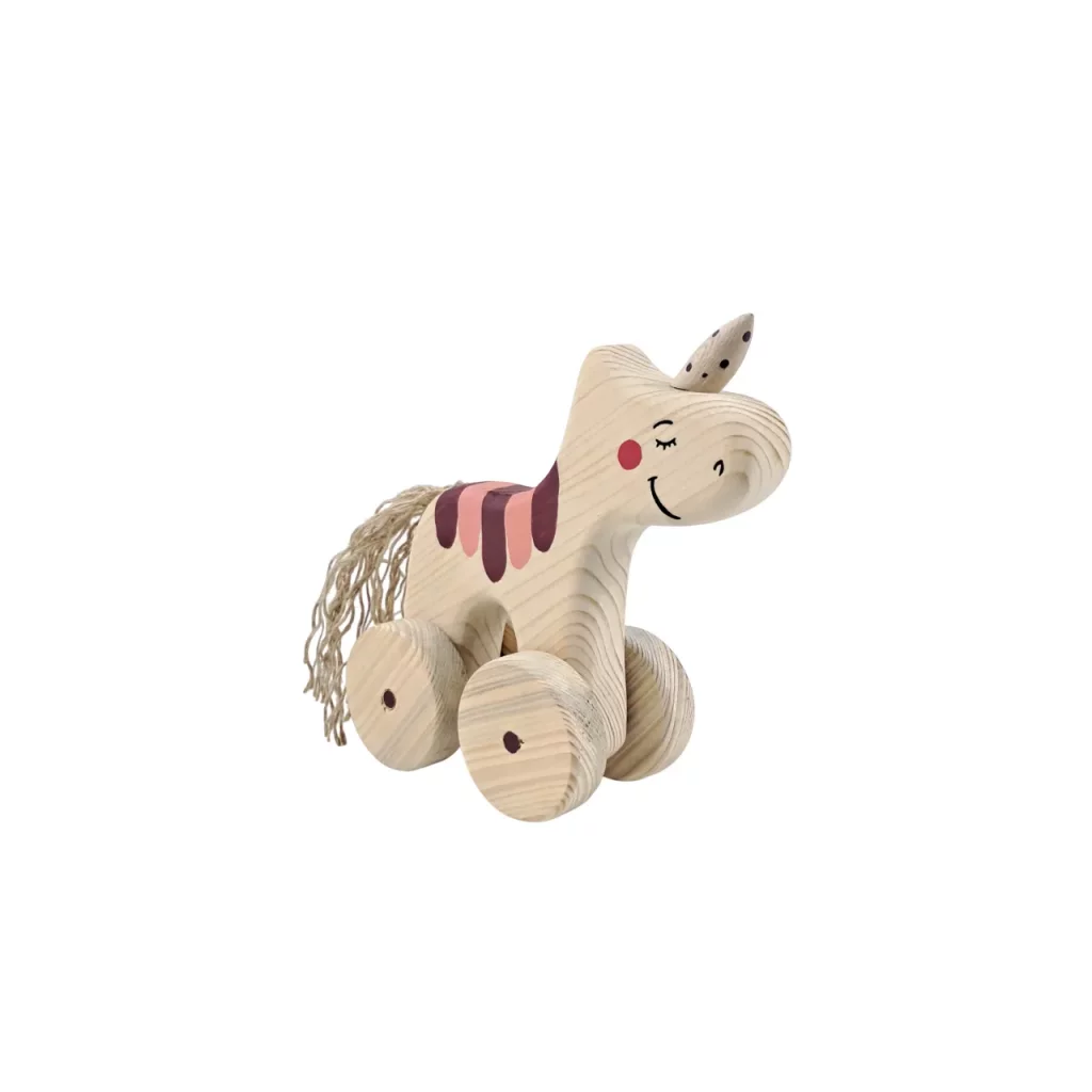 عروسک چوبی اسب چرخدار