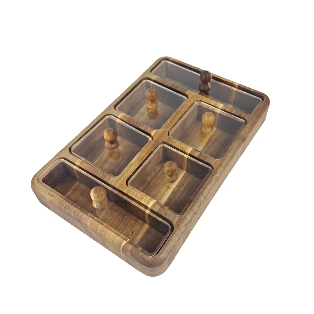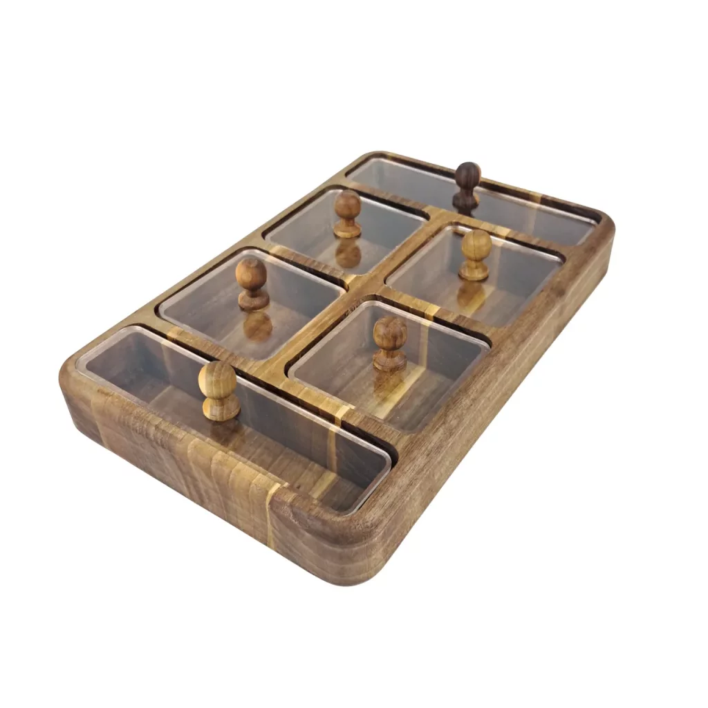 جعبه پذیرایی مستطیل 6 خانه چوب گردو کد WD6173