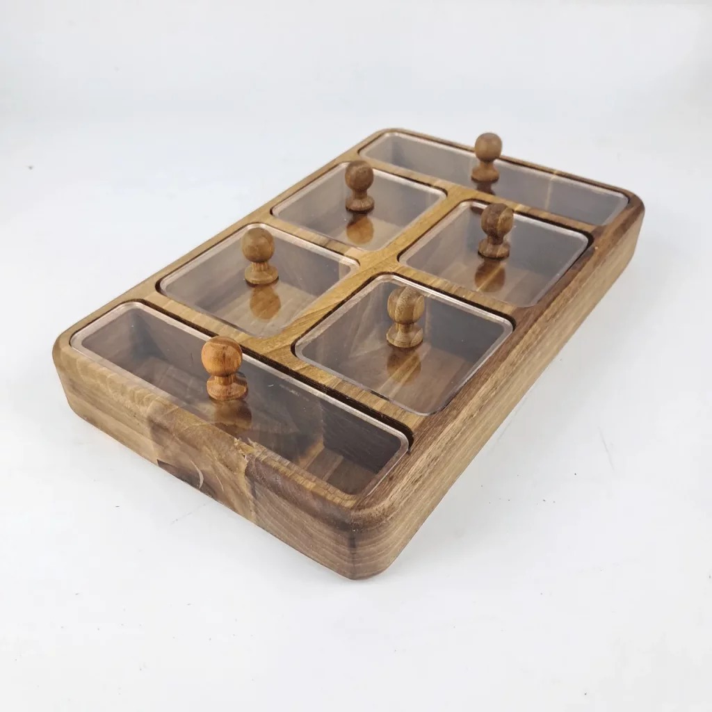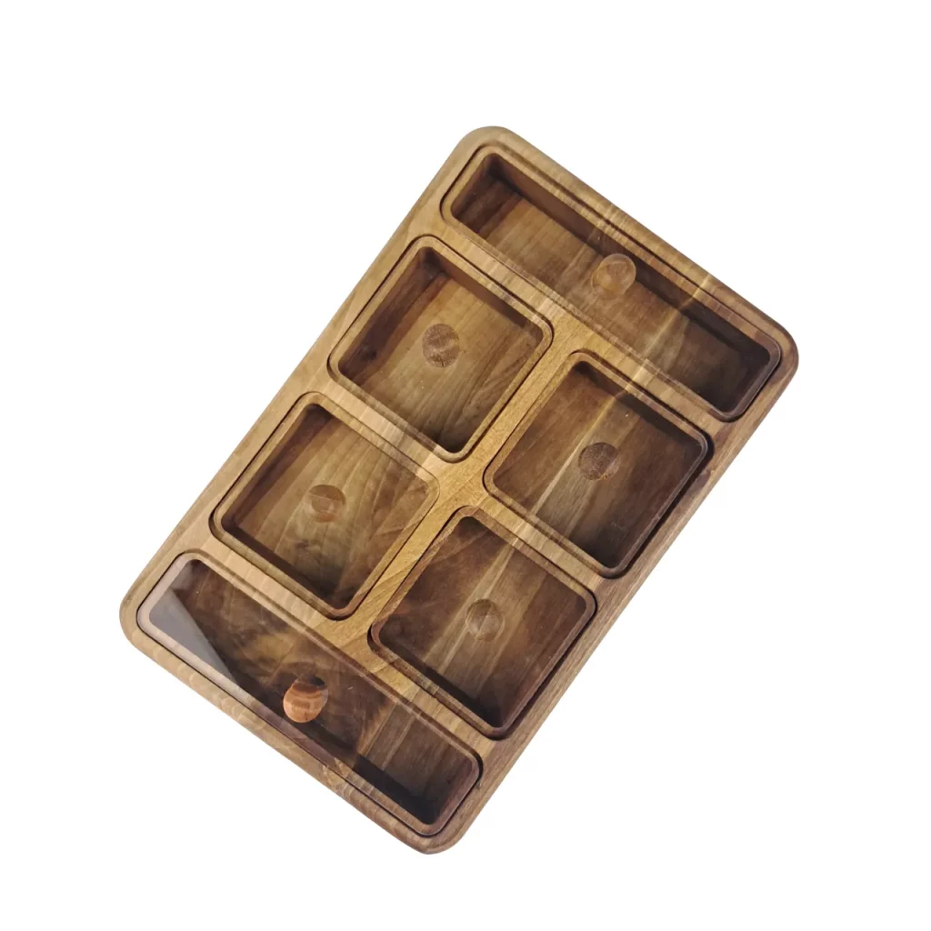جعبه پذیرایی مستطیل 6 خانه چوب گردو