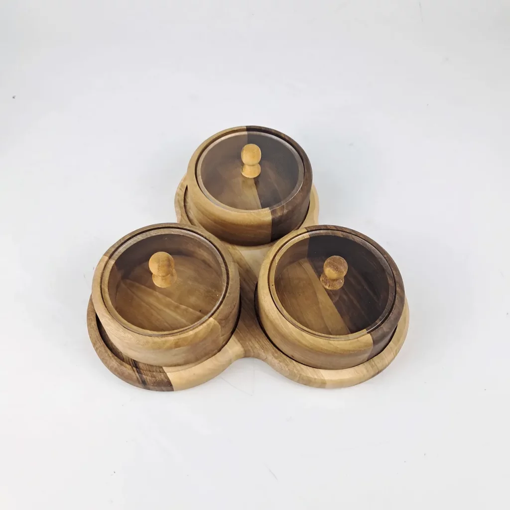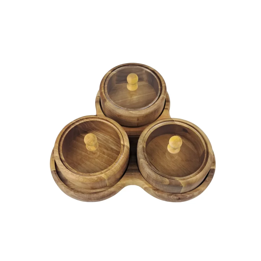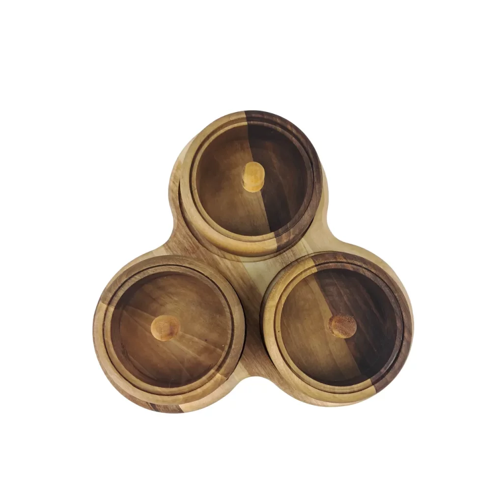 جعبه پذیرایی ۳ دایره با استند چوب گردو، ترکیبی از زیبایی طبیعی و کارایی برای سرو مرتب تنقلات و دمنوش است. درب آن محتویات را تازه و محفوظ نگه میدارد و طراحی مینیمال با رگههای طبیعی چوب گردو، جلوهای شیک به میز میبخشد. این جعبه با استند مقاوم، گزینهای ایدهآل برای پذیراییهای مدرن و هدیهای ارزشمند برای هر خانهای است. قطر هر محفظه 10 سانتی متر می باشد.
