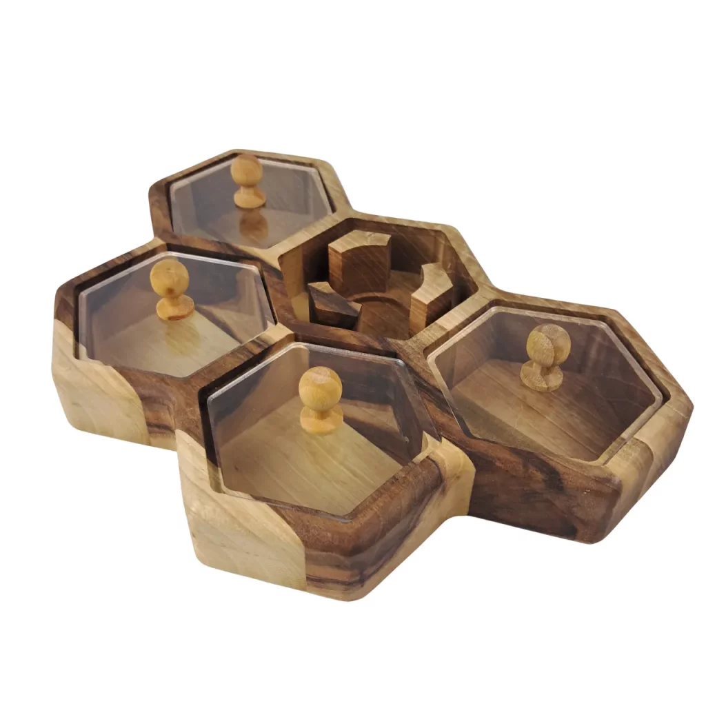 جعبه پذیرایی زنبوری 5 خانه وارمردار گردو کد WD6235