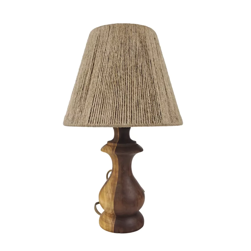 این آباژور رومیزی چوبی با هنر خراطی و طراحی الهامگرفته از سبک بوهمی، ترکیبی از ظرافت و طبیعت را به فضای داخلی میآورد. شیلد کنفی آن نوری ملایم و دلنشین منتشر میکند و باعث ایجاد فضایی گرم و صمیمی میشود. با فرم منحصربهفرد و جزئیات دقیق چوبی، این آباژور علاوه بر روشنایی، جلوهای تزئینی و جذاب روی میز یا کنار مبل ایجاد میکند.