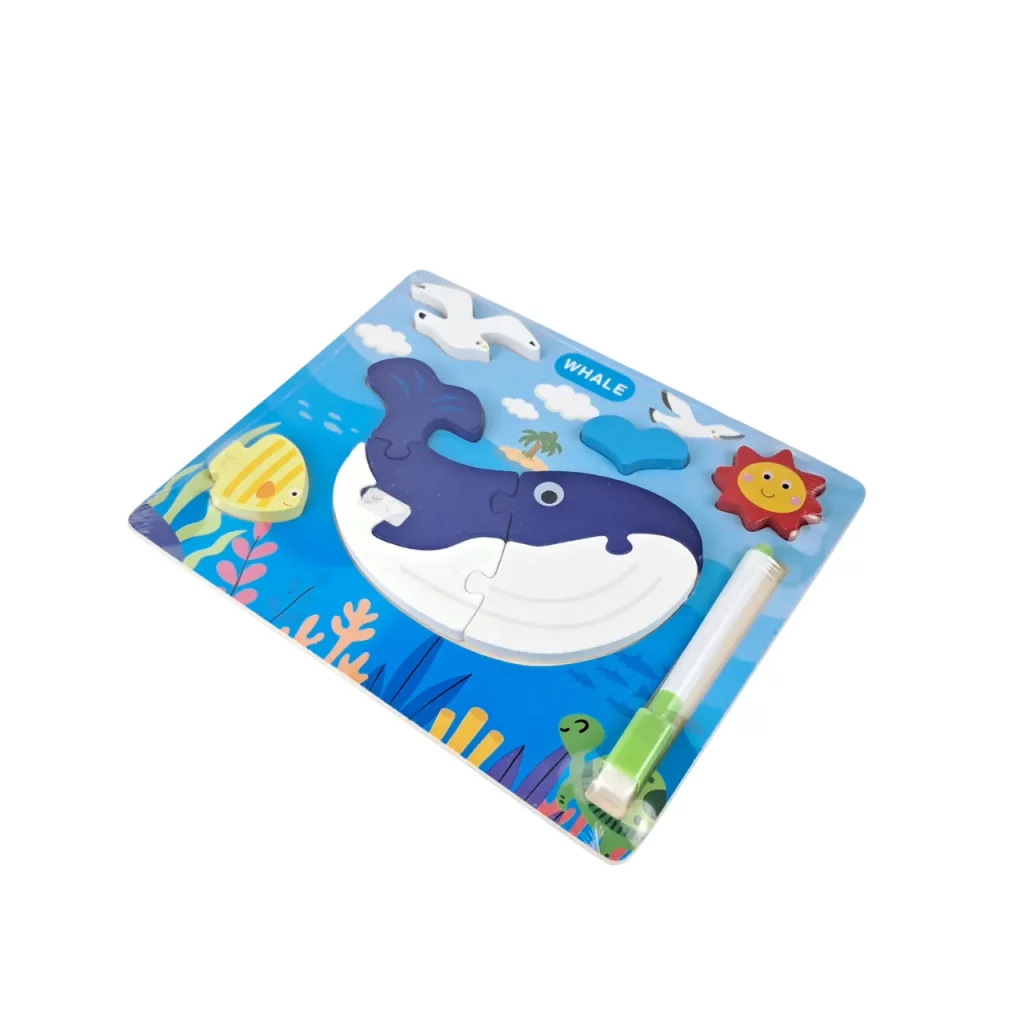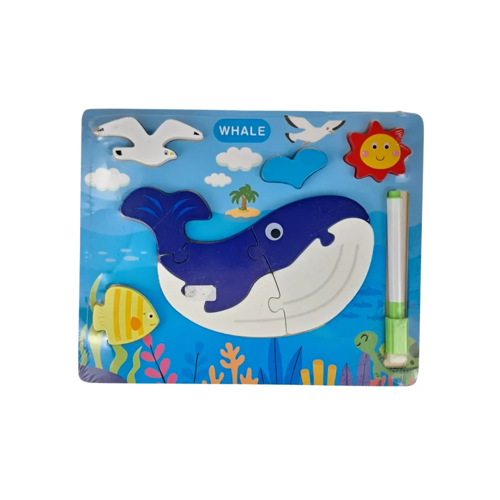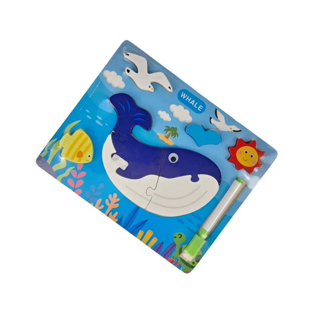 پازل چوبی کودک طرح نهنگ همراه ماژیک