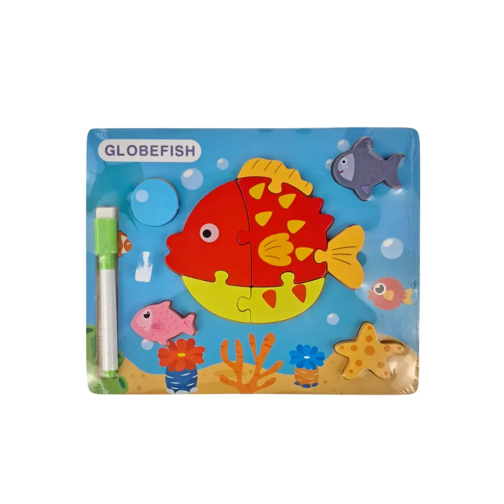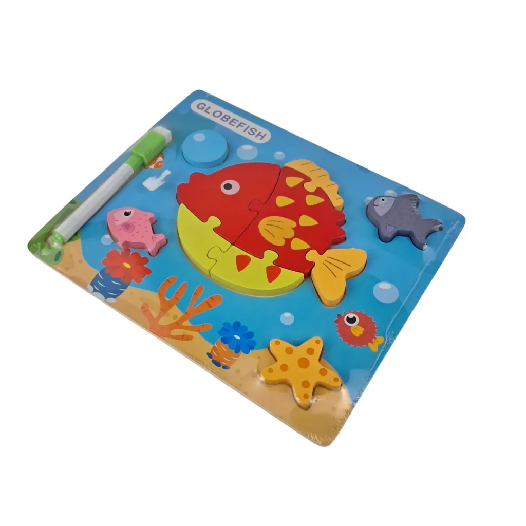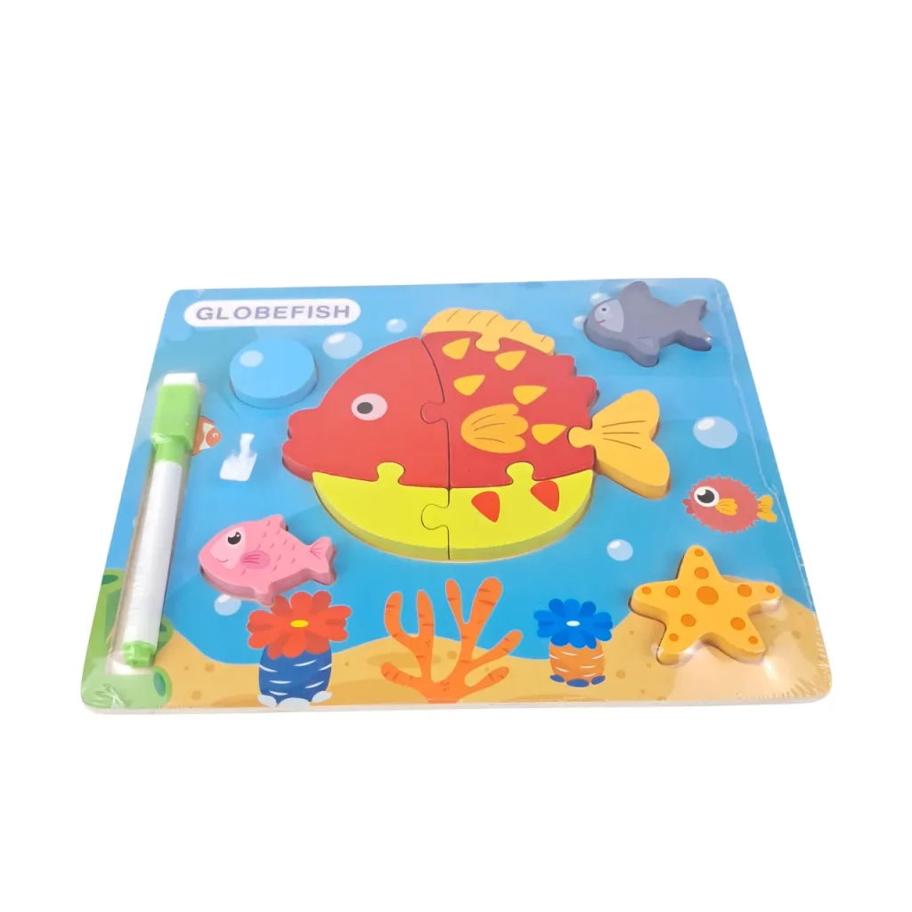 پازل چوبی کودک طرح ماهی همراه ماژیک