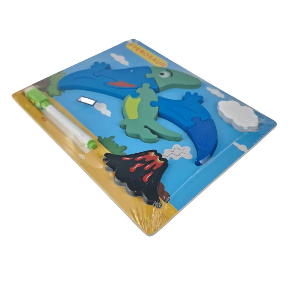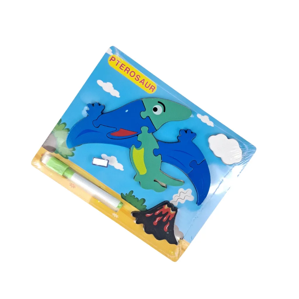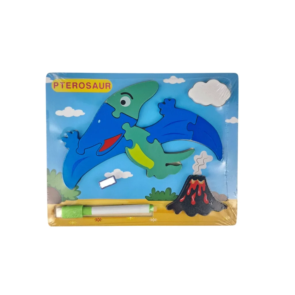 پازل چوبی کودک طرح دایناسور همراه ماژیک
