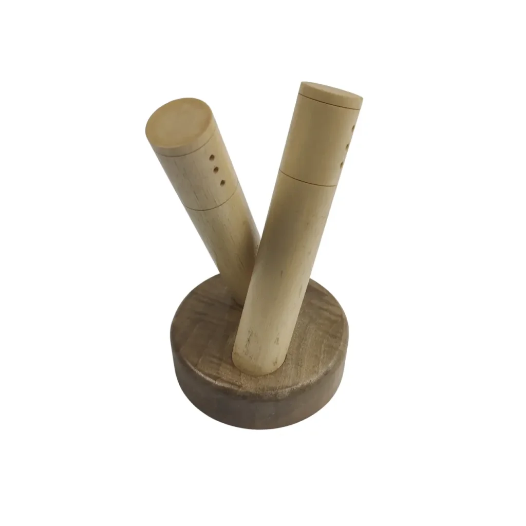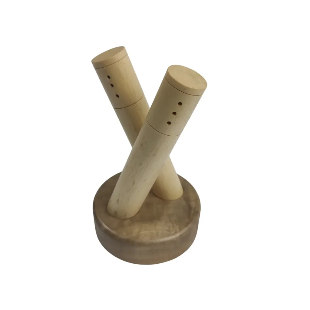 ست نمکدان و فلفلدان چوبی با طراحی میلهای استوانهای، انتخابی شیک و متفاوت برای میز غذاخوری یا آشپزخانه است. چوبِ طبیعی با بافت و رنگ گرم، جلوهای آرامشبخش و زیبا به فضا میبخشد. این نوع طراحی علاوه بر ظاهر زیبا، بهدلیل فرم ساده و یکپارچه، نگهداری آسانتری دارد و میتواند به عنوان یک قطعه دکوری نیز محسوب شود. برای حفظ کیفیت چوب، بهتر است از قرار دادن آن در محیط مرطوب، شستن کامل با آب زیاد یا استفاده مداوم از مایعات خودداری شود. سطح را میتوان با روغن گیاهی مناسب چوب مرطوب کرد تا دوام و زیبایی آن حفظ شود.