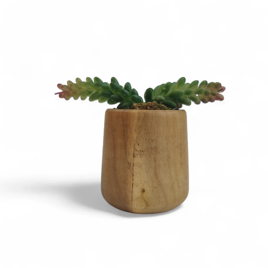 گلدان چوبی با گل مصنوعی