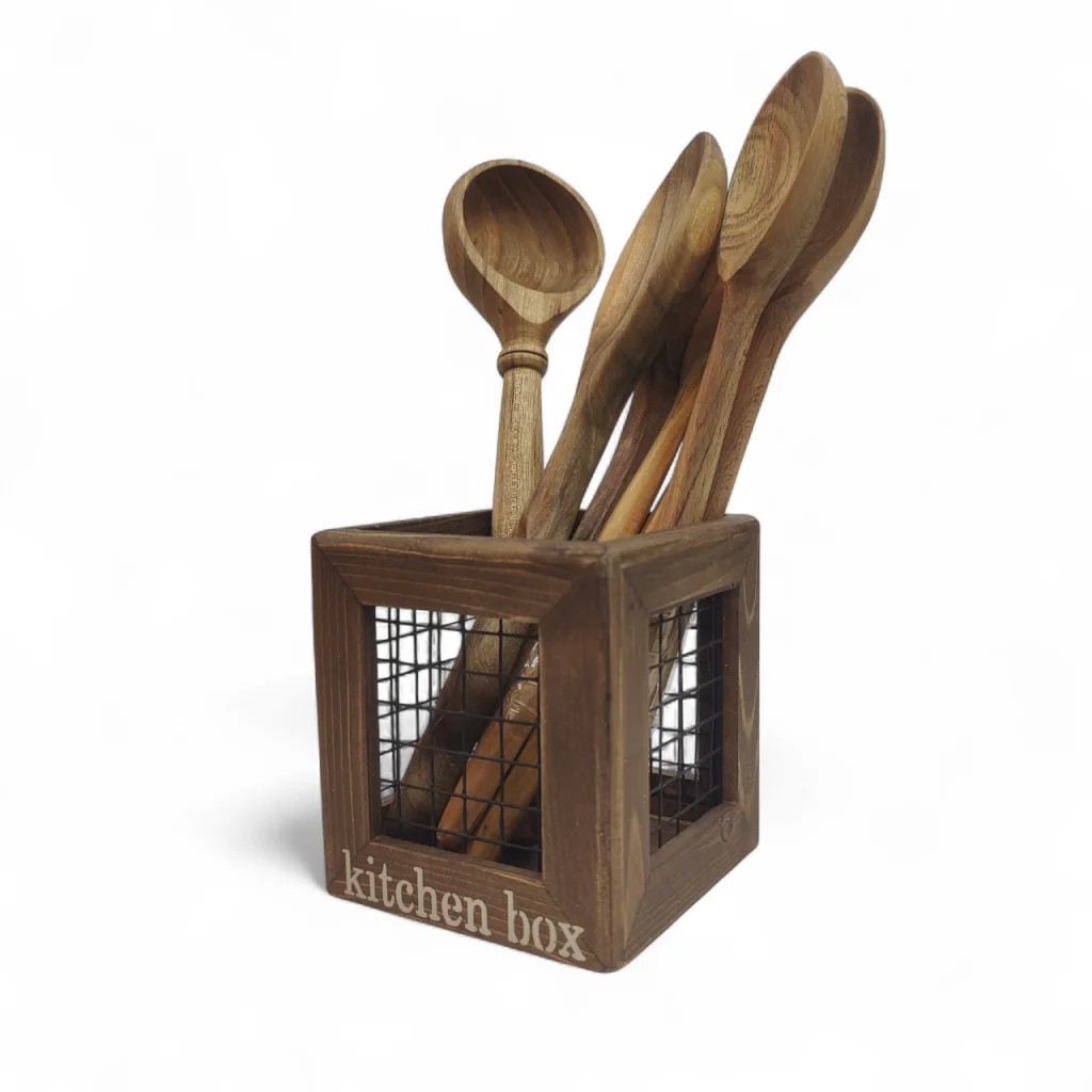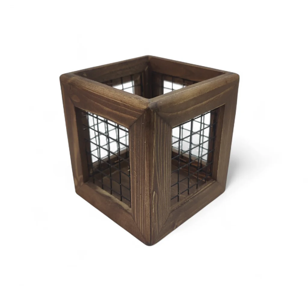 جاقاشقی چوبی توریدار با ترکیبی زیبا از چوب طبیعی و توری فلزی، گزینهای بادوام و کاربردی برای نظمدهی به قاشق، چنگال و لوازم آشپزخانه است و طراحی مکعبی آن باعث میشود فضای روی کابینت یا میز شما بهخوبی مدیریت شده و تهویه مناسب داخل محفظه از تجمع رطوبت جلوگیری کند و لوازم همیشه خشک و تمیز باقی بمانند و همین سادگی شیک و ساخت دقیق، این محصول را به انتخابی مناسب برای آشپزخانههای مدرن، چیدمانهای رستیک و حتی استفاده در کافیشاپها تبدیل کرده است.