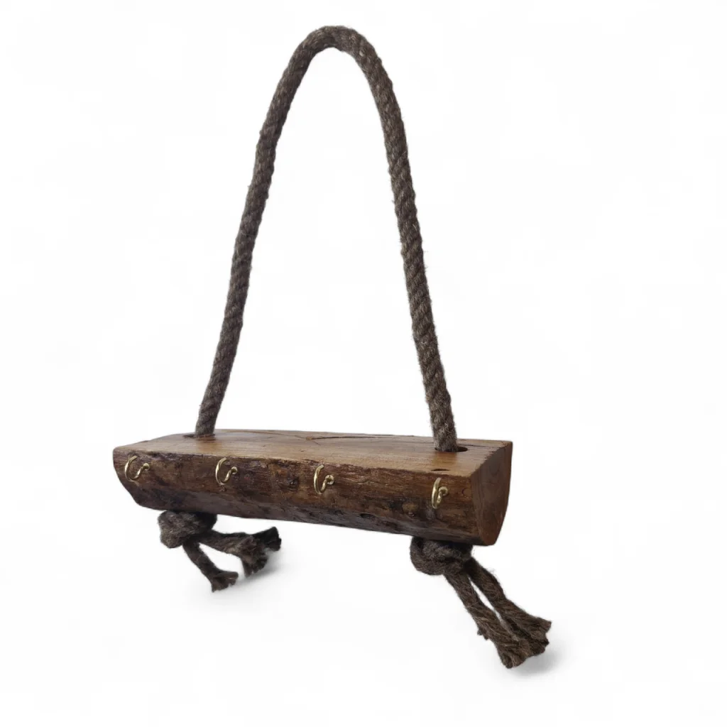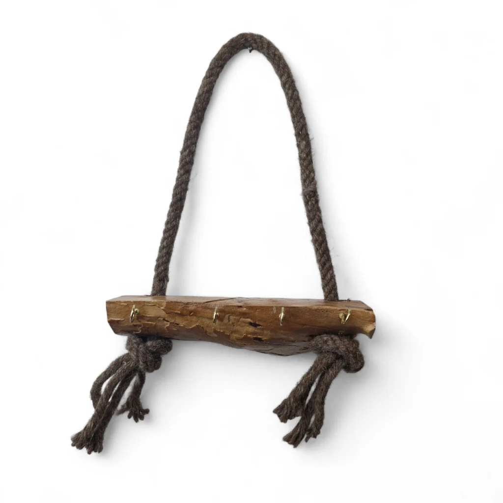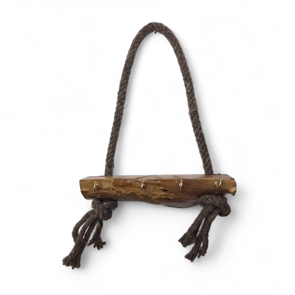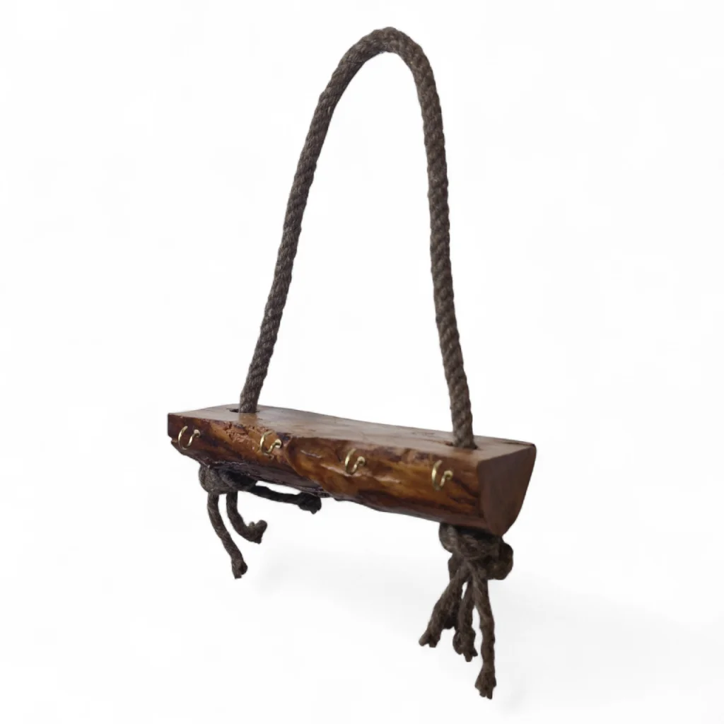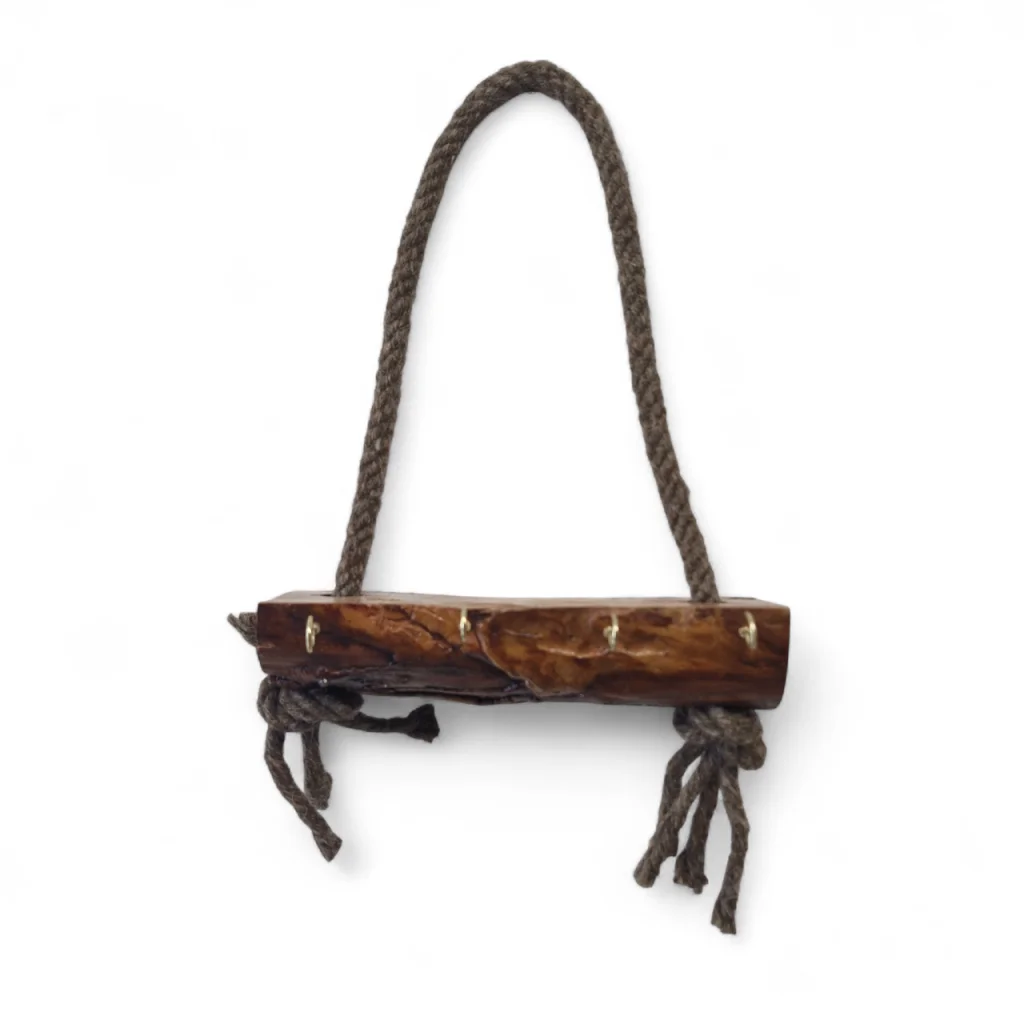 جاکلیدی دیواری چوبی روستیک با طراحی گرم و طبیعی، یک وسیله کاربردی و در عین حال دکوراتیو برای ورودی خانه یا اتاق شماست و بافت رستیک چوب در کنار فرم تنه درخت و طناب آویز آن، جلوهای صمیمی و دلنشین ایجاد میکند و بهخوبی با دکورهای روستیک، کلاسیک و حتی سبکهای مدرن ترکیب میشود؛ این جاکلیدی به دلیل قلابهای محکم و چیدمان منظم، امکان نظمدهی آسان به کلیدهای روزمره را فراهم کرده و اندازه استانداردش باعث میشود بدون اشغال فضای زیاد، کارایی بالایی داشته باشد و در کنار آینه، میز کنسول یا دیوار ورودی، نقش یک عنصر جذاب و کاربردی را ایفا کند.