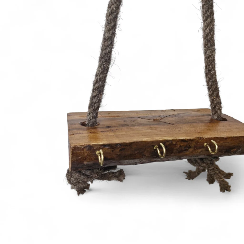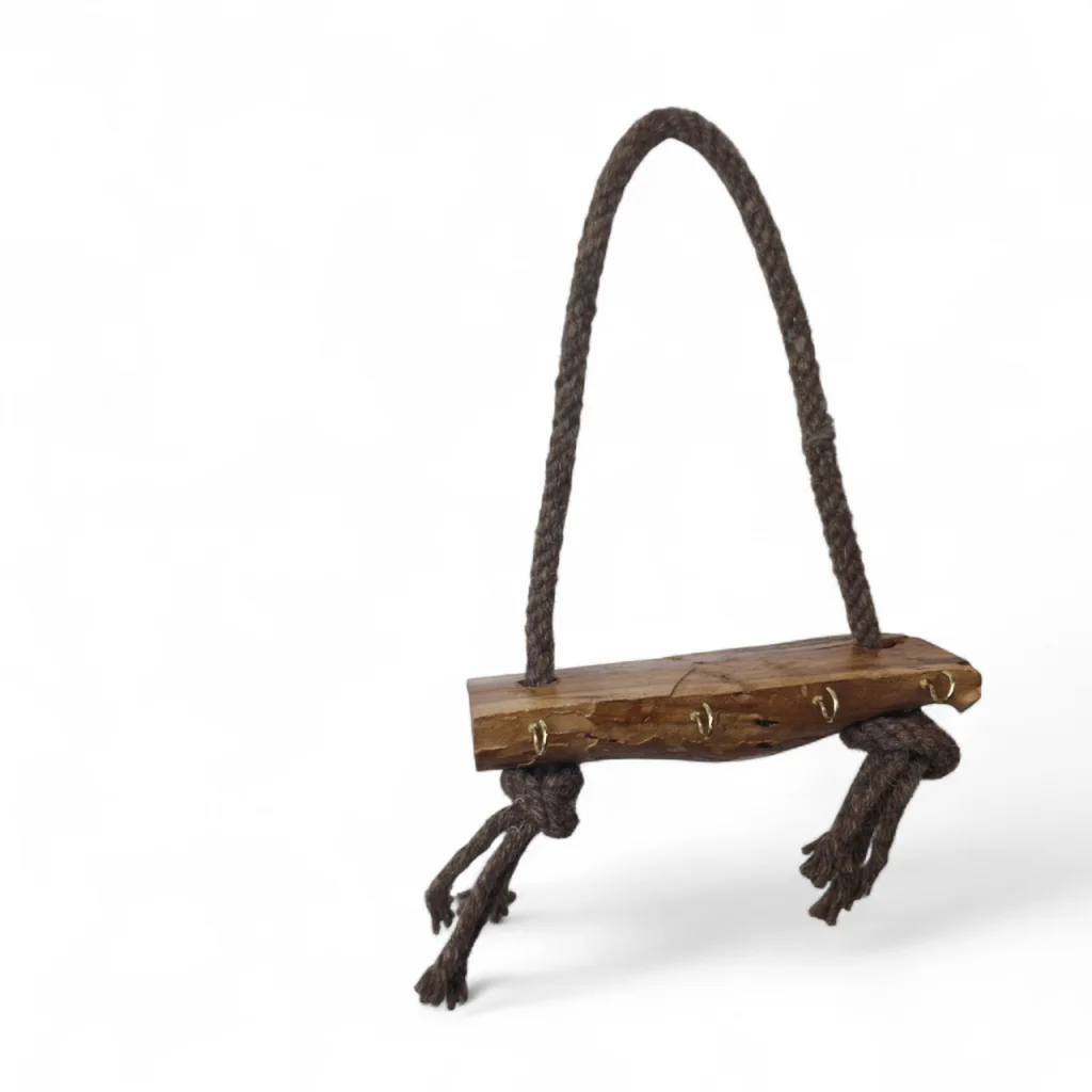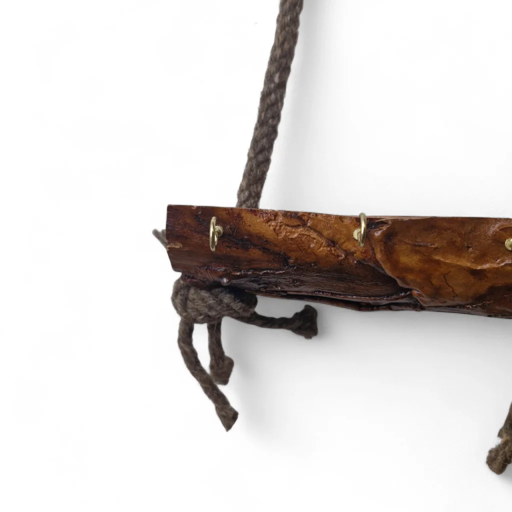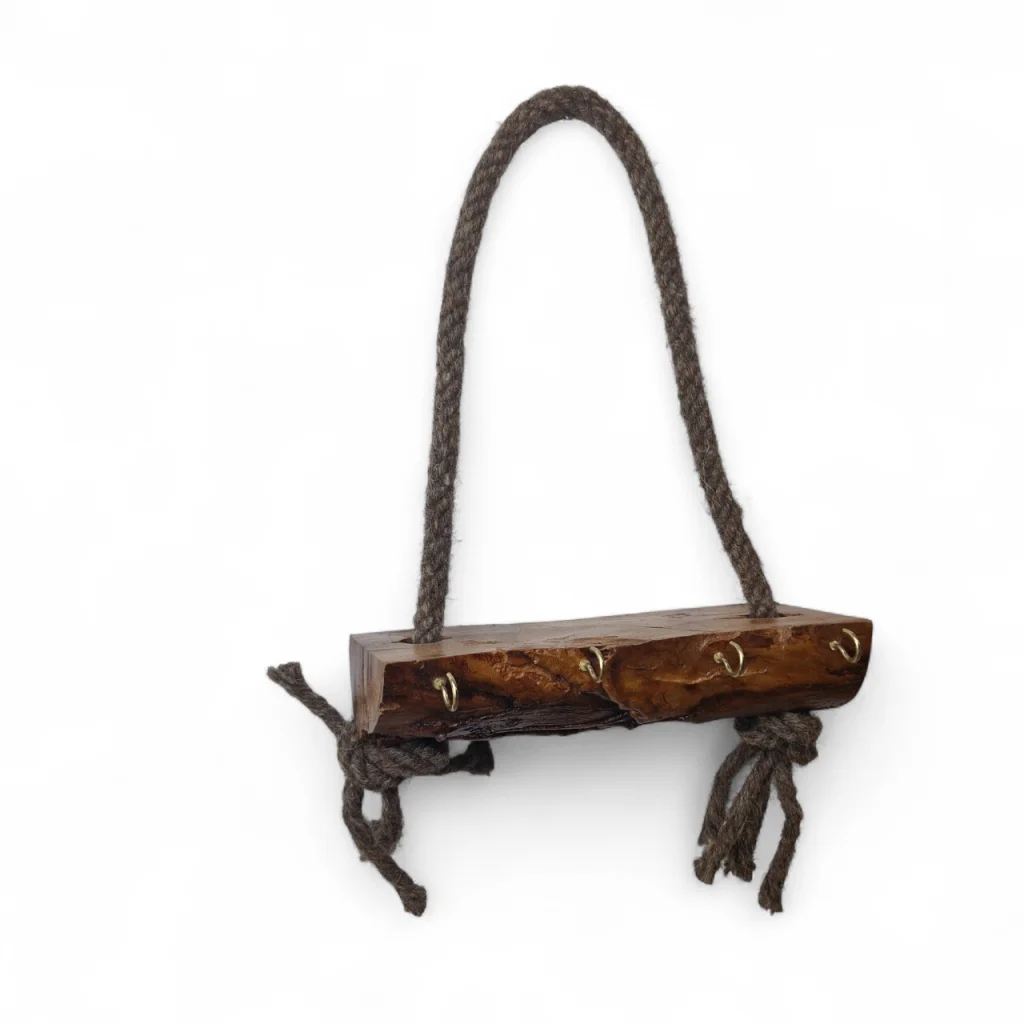 جاکلیدی دیواری چوبی روستیک با طراحی گرم و طبیعی، یک وسیله کاربردی و در عین حال دکوراتیو برای ورودی خانه یا اتاق شماست و بافت رستیک چوب در کنار فرم تنه درخت و طناب آویز آن، جلوهای صمیمی و دلنشین ایجاد میکند و بهخوبی با دکورهای روستیک، کلاسیک و حتی سبکهای مدرن ترکیب میشود؛ این جاکلیدی به دلیل قلابهای محکم و چیدمان منظم، امکان نظمدهی آسان به کلیدهای روزمره را فراهم کرده و اندازه استانداردش باعث میشود بدون اشغال فضای زیاد، کارایی بالایی داشته باشد و در کنار آینه، میز کنسول یا دیوار ورودی، نقش یک عنصر جذاب و کاربردی را ایفا کند.