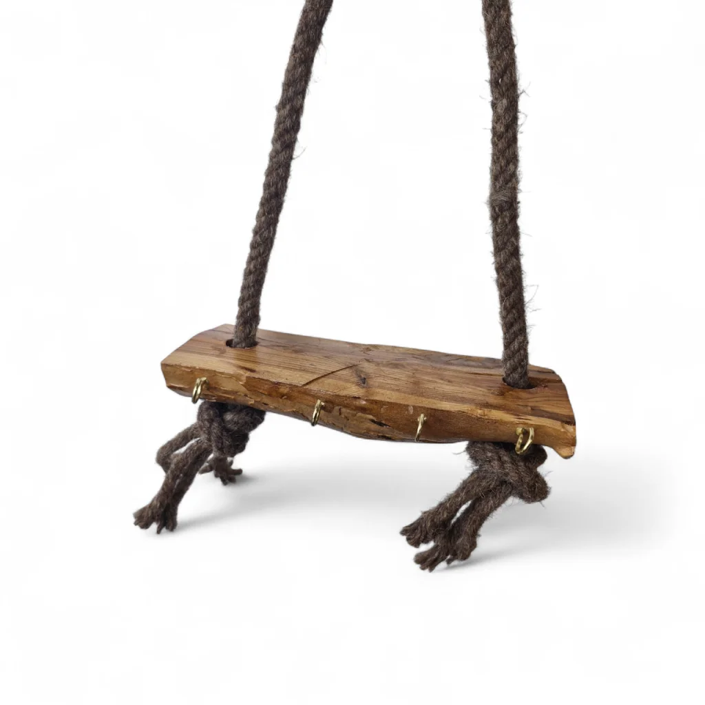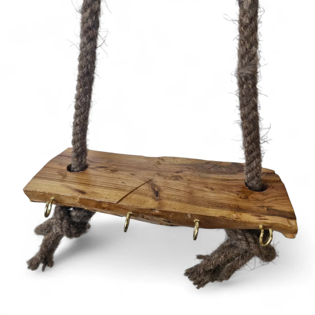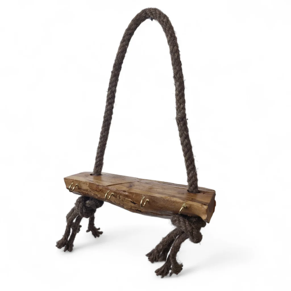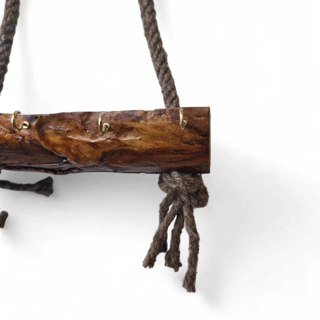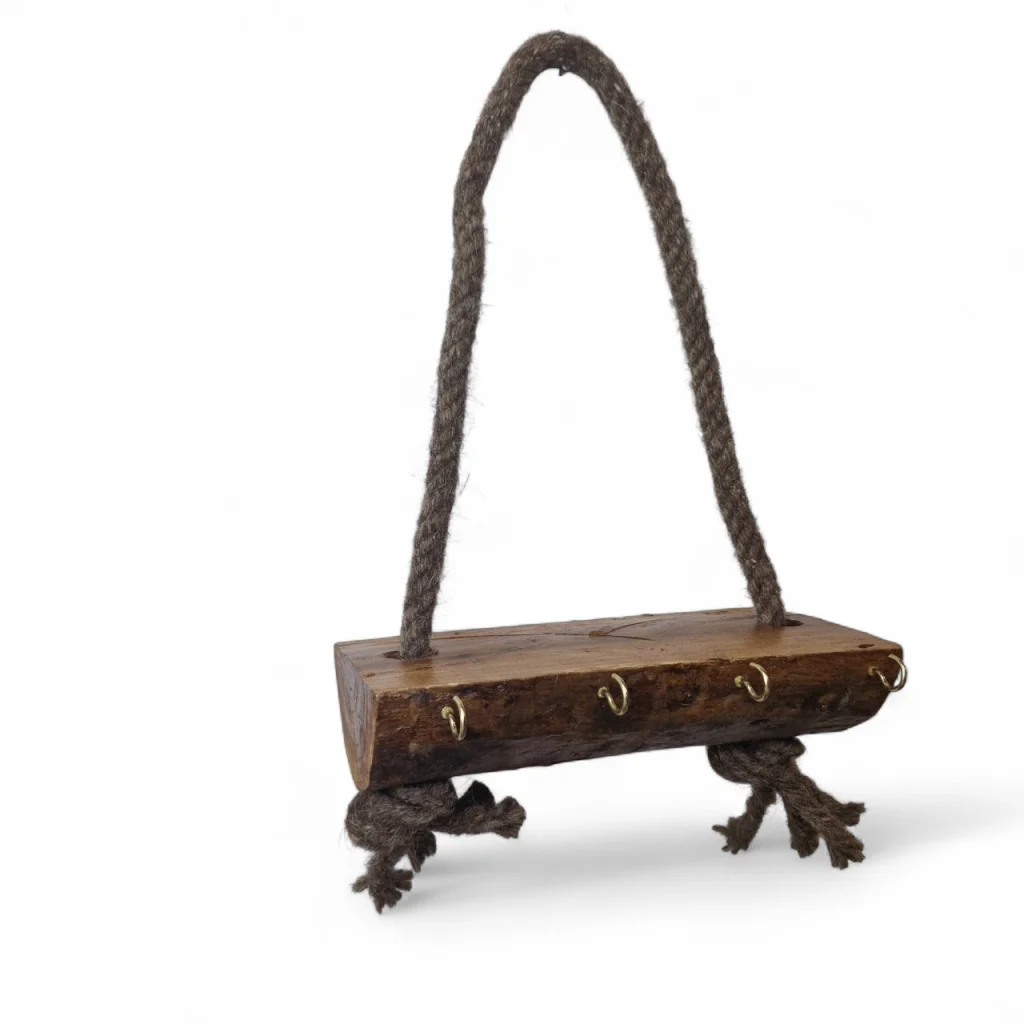 جاکلیدی دیواری چوبی روستیک با طراحی گرم و طبیعی، یک وسیله کاربردی و در عین حال دکوراتیو برای ورودی خانه یا اتاق شماست و بافت رستیک چوب در کنار فرم تنه درخت و طناب آویز آن، جلوهای صمیمی و دلنشین ایجاد میکند و بهخوبی با دکورهای روستیک، کلاسیک و حتی سبکهای مدرن ترکیب میشود؛ این جاکلیدی به دلیل قلابهای محکم و چیدمان منظم، امکان نظمدهی آسان به کلیدهای روزمره را فراهم کرده و اندازه استانداردش باعث میشود بدون اشغال فضای زیاد، کارایی بالایی داشته باشد و در کنار آینه، میز کنسول یا دیوار ورودی، نقش یک عنصر جذاب و کاربردی را ایفا کند.