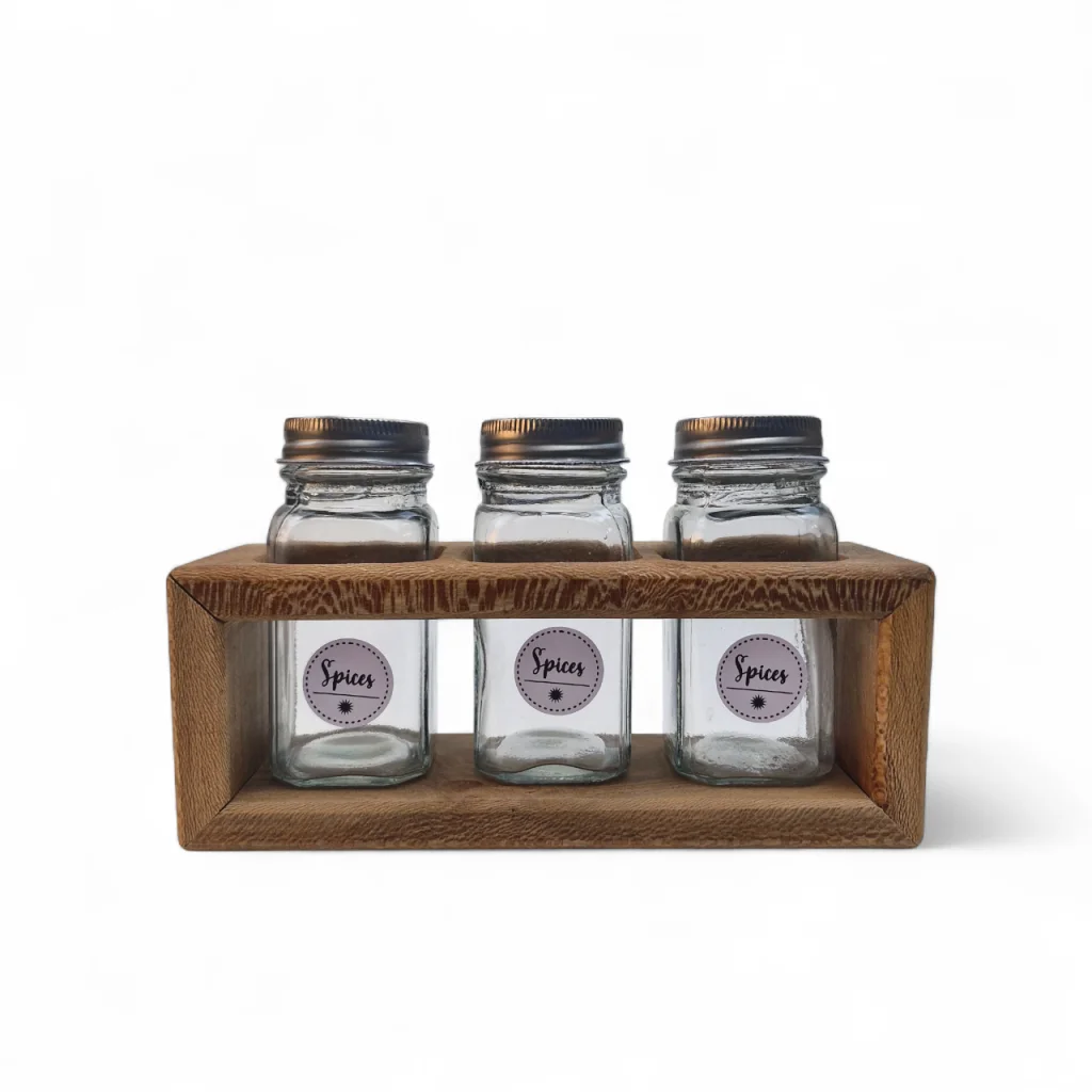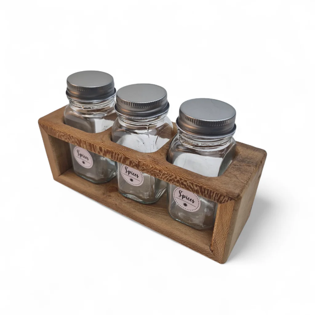 جا ادویه سهتایی چوبی با طراحی منظم و کاربردی، انتخابی ایدهآل برای نظمدهی به ادویههای پرمصرف آشپزخانه است و بافت طبیعی چوب در کنار ظروف شیشه ای ، جلوهای گرم و هماهنگ به فضای آشپزی میبخشد؛ این ست سهتایی با ابعاد استاندارد، امکان دسترسی آسان به ادویهها را فراهم کرده و دربهای کیپ آن به حفظ طعم و عطر مواد کمک میکند، پایهی مستحکم و چینش مرتب ظروف نیز باعث میشود روی کابینت یا قفسه آشپزخانه ظاهر شیک و تمیزی ایجاد شود، همچنین سبک مینیمال و طبیعیاش با انواع دکورهای مدرن، کلاسیک و رستیک هماهنگ بوده و برای استفاده روزمره یا حتی کافیبار انتخابی بسیار کاربردی و زیباست.