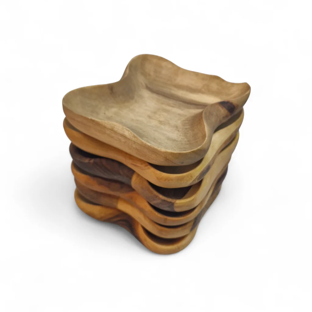 پیشدستی چوبی مربع دفرمه با طراحی متفاوت و خطوط آزاد، انتخابی چشمگیر برای سرو انواع شیرینی، میوه، دسر یا تنقلات است و ترکیب فرم مربعی با زاویههای دفرمهشده، جلوهای هنری و مدرن به میز پذیرایی میدهد؛ بافت طبیعی چوب در کنار پرداخت تمیز، حس گرما و اصالت را به فضا اضافه میکند و اندازه استاندارد آن استفاده روزمره را ساده و دلپذیر میسازد، این پیشدستی بهراحتی با ظروف چوبی، دکورهای رستیک و سبکهای مینیمال هماهنگ شده و علاوه بر کاربرد عملی، نقش یک المان دکوراتیو زیبا را نیز ایفا میکند و میتواند برای کافیشاپها، خانه یا پکهای هدیه انتخابی خاص و ماندگار باشد.