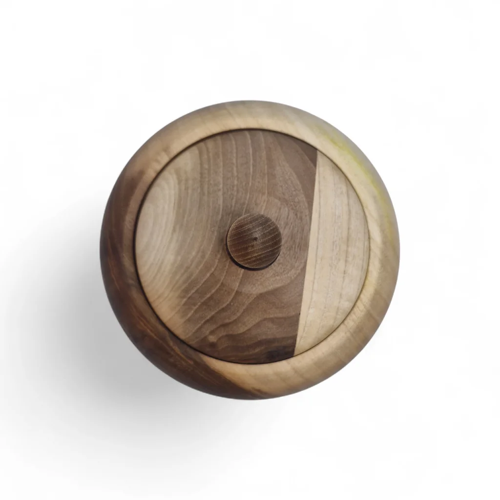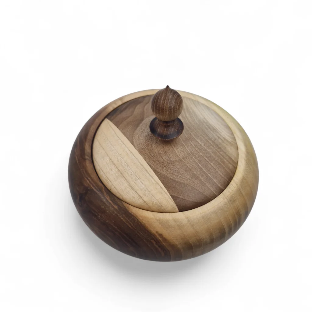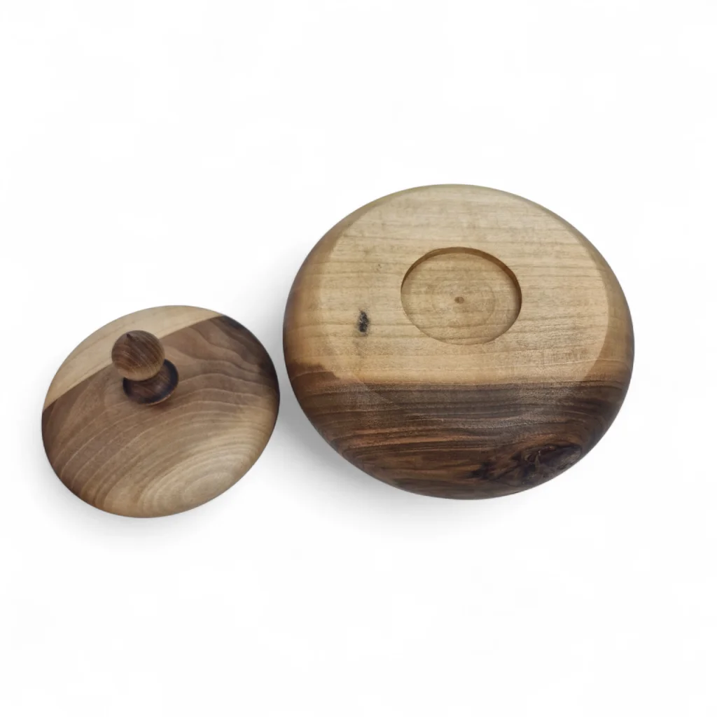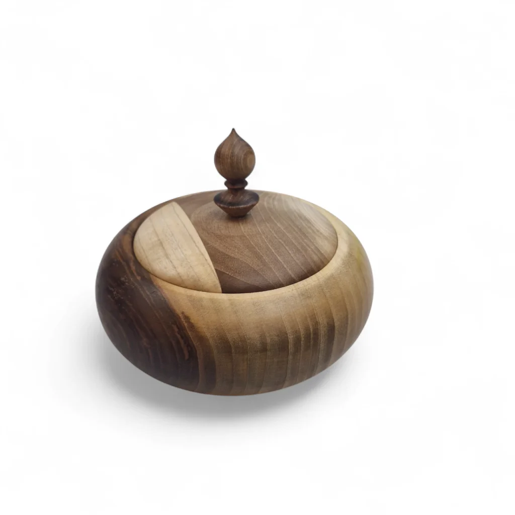 شکلاتخوری چوبی دردار از جنس گردو، طراحیای نرم و مدور دارد که حس گرمای طبیعی چوب و ظرافت را به فضای پذیرایی شما میآورد. درب چوبی بهصورت جداشدنی است تا بتواند شکلاتها یا تنقلات را بهخوبی محافظت کند، و در عین حال ظاهر دکوراتیو چشمنوازی دارد. چنین ظرفی نهتنها برای سرو شکلات کاربردی است، بلکه به عنوان یک قطعه دکوری چوبی با ارزش در میز یا بوفه شما میدرخشد.