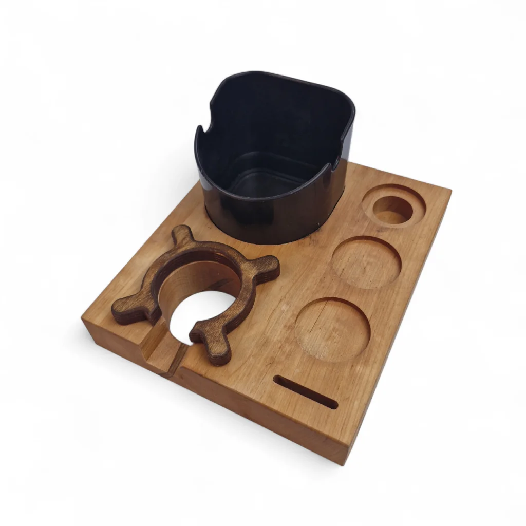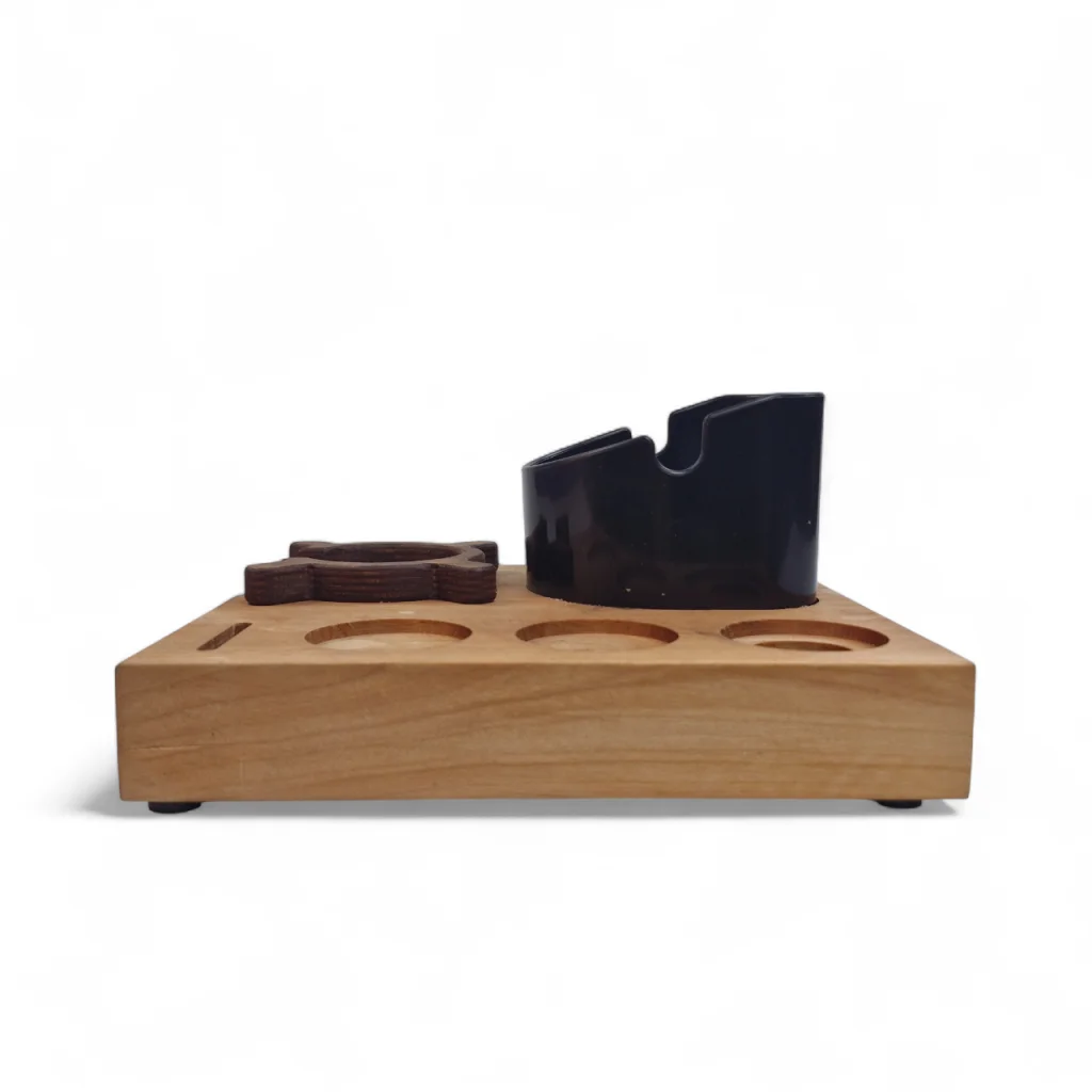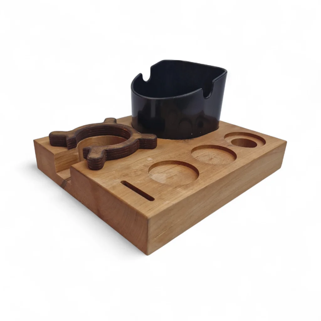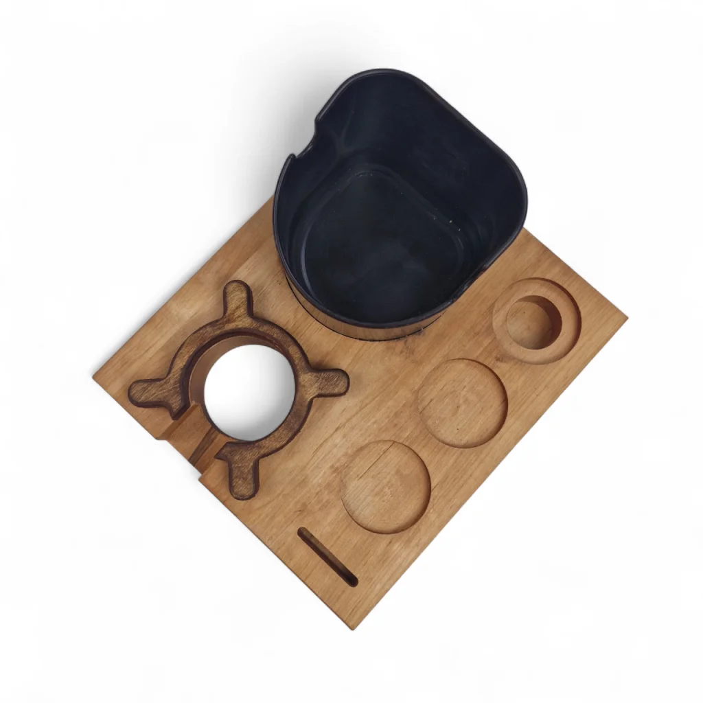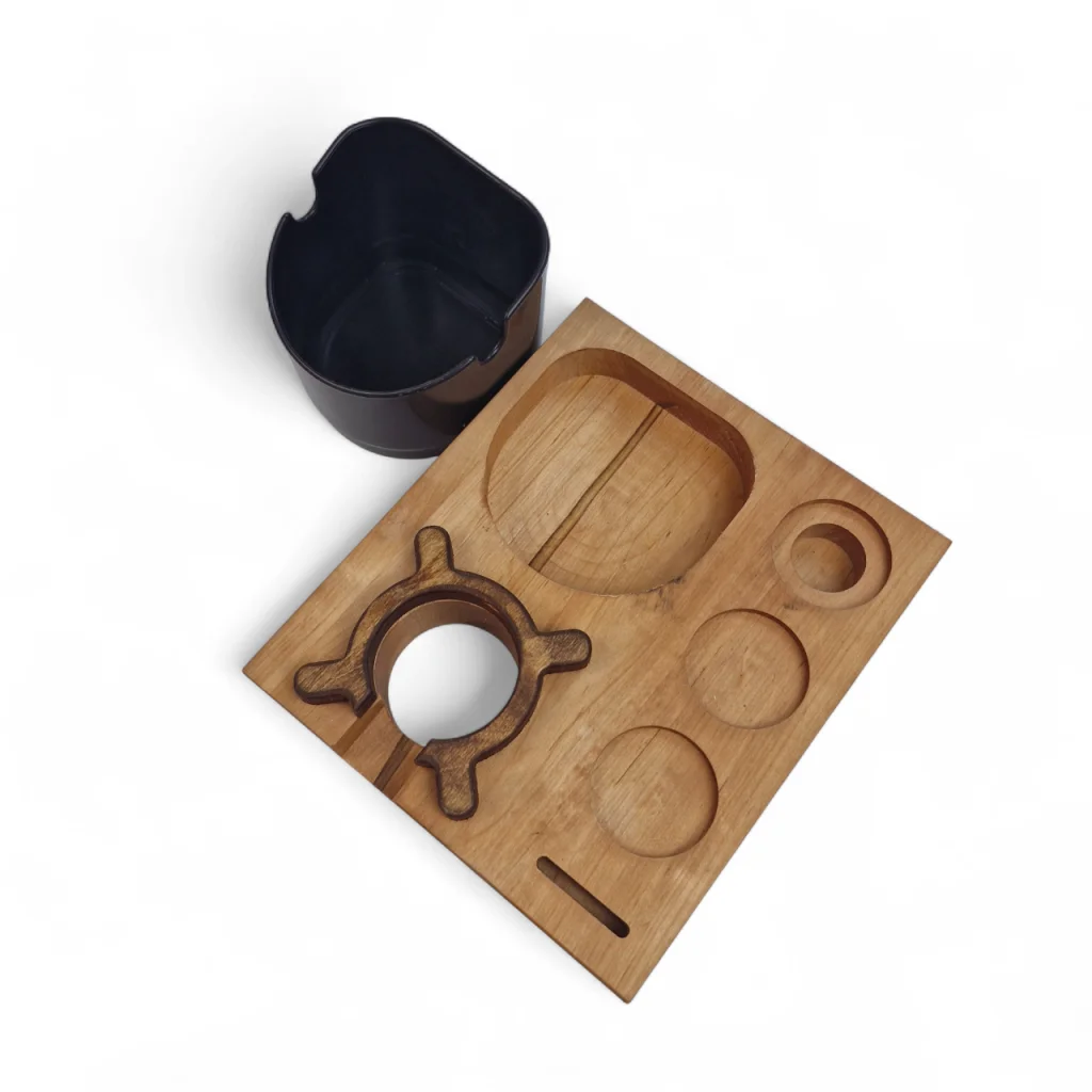 استند اسپرسو سطلدار با طراحی کاربردی و چوب طبیعی مرغوب، یک ایستگاه کوچک اما کامل برای سرو قهوه فراهم میکند و با سطل پلاستیکی مشکی که روی آن قرار گرفته، امکان جمعآوری تفاله یا قرار دادن لوازم کوچک را آسانتر میسازد. شیارها و حفرههای دقیق روی استند جای مناسبی برای فنجان اسپرسو، کپسول قهوه و اکسسوریهای موردنیاز ایجاد کرده و نظم دلنشینی به میز قهوه شما میدهد. ترکیب رنگ چوب روشن با قطعات تیرهتر، جلوهای زیبا و حرفهای ایجاد کرده و این محصول را برای استفاده در خانه، دفتر کار یا حتی کافهها مناسب میسازد. طراحی محکم و ابعاد استاندارد آن استفاده روزانه را راحت کرده و امکان جابهجایی آسان را فراهم میکند. این استند میتواند تجربه آمادهسازی قهوه را منظمتر، شیکتر و لذتبخشتر کند و انتخابی عالی برای هدیه دادن به دوستداران قهوه است.