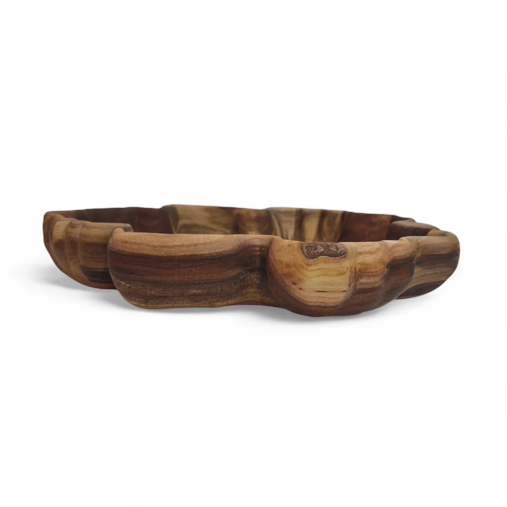 اردوخوری چوبی طرح برگ چنار با الهام از فرم زیبا و طبیعی برگ چنار طراحی شده و جلوهای هنری و چشمنواز به میز پذیرایی شما میبخشد، به گونهای که هم برای سرو تنقلات و مزهها کاربردی است و هم نقش یک دکوری جذاب را ایفا میکند. چوب طبیعی مرغوب، بافت گرم و اصیلی به ظرف بخشیده و پرداخت دقیق آن باعث شده لبهها و سطح ظرف کاملاً صاف و خوشتراش باشد. فرم چندخانه مانند خطوط برگ، امکان جداسازی و چیدمان متنوع خوراکیها را فراهم میکند و ظاهر میز را حرفهایتر نشان میدهد. وزن مناسب و طراحی استاندارد، استفاده روزمره و شستوشو را آسان کرده و در کنار دکورهای مدرن، مینیمال یا روستیک بهخوبی هماهنگ میشود. این اردوخوری یک انتخاب عالی برای مهمانیها، دورهمیها و حتی هدیه دادن به علاقهمندان ظروف چوبی خاص است.