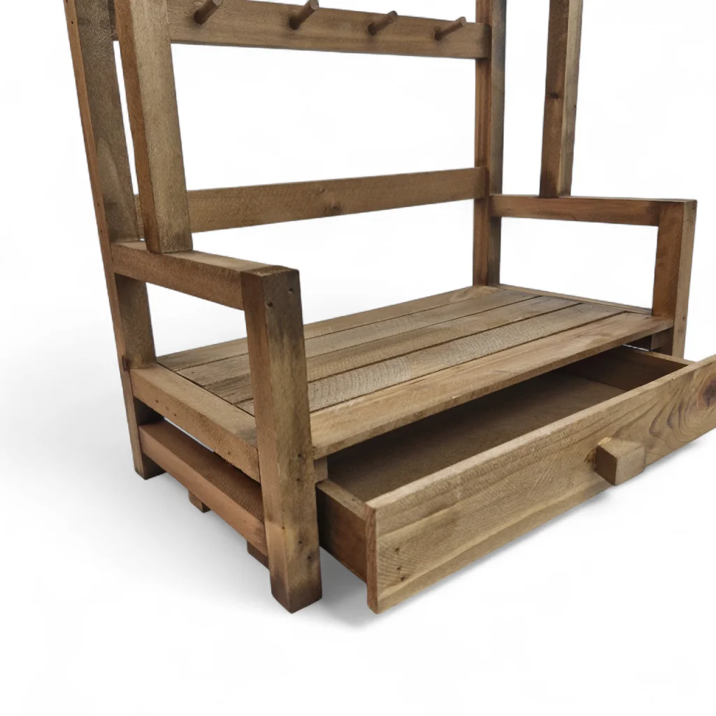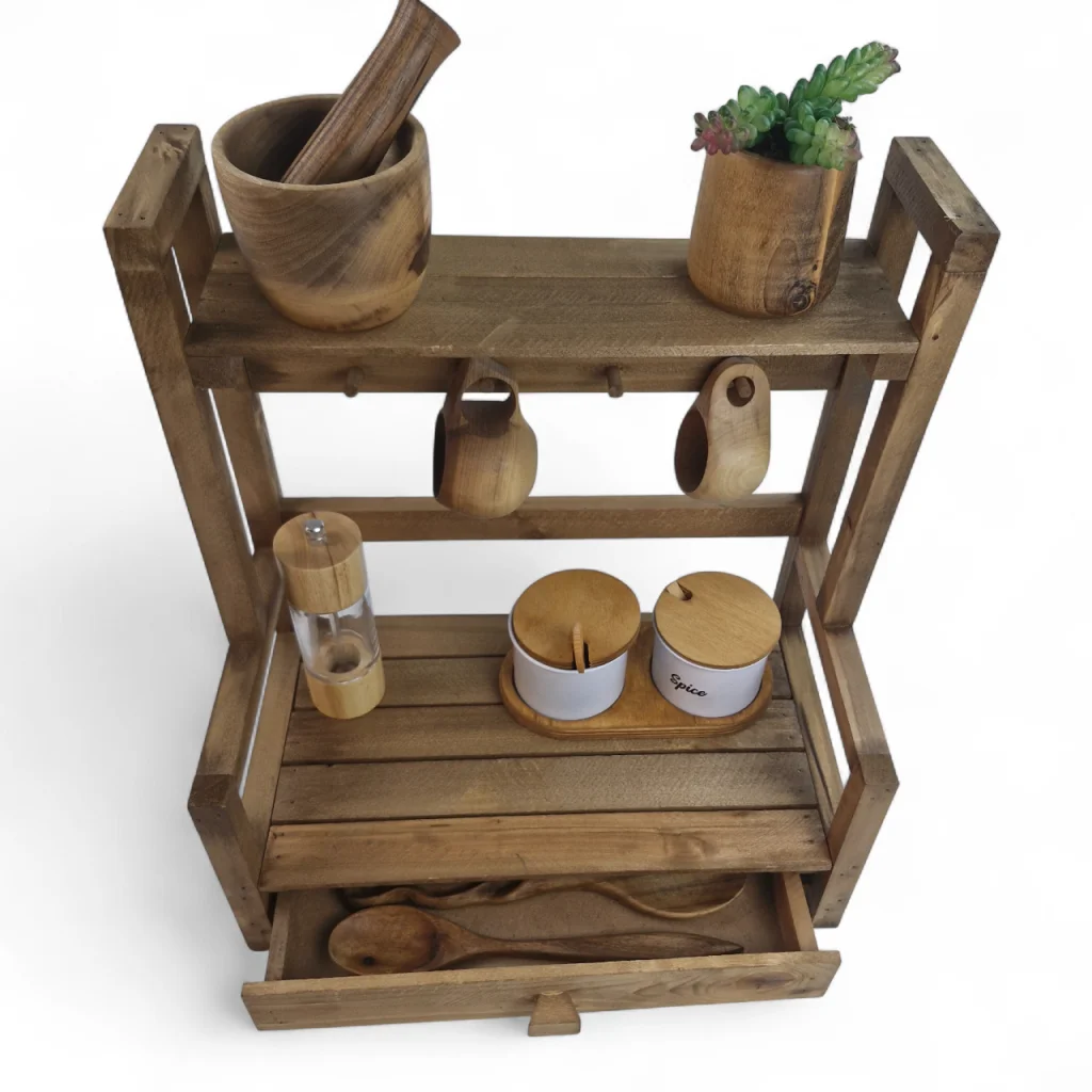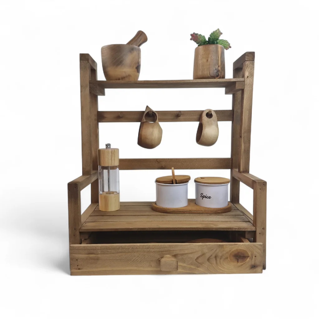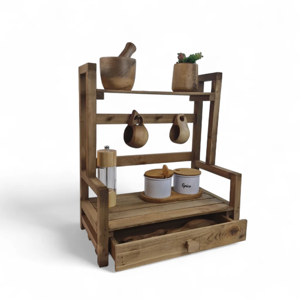استند پاسماوری چوبی کشودار با آویز لیوان ، ترکیبی شیک از طراحی سنتی و کاربرد مدرن است. این محصول از چوب مرغوب ساخته شده و دارای یک کشوی محکم در پایین برای نگهداری بانکهها یا ظروف کوچک است. در قسمت بالایی، آویزهایی برای آویختن لیوان قرار دارد که دسترسی به آنها آسان بوده و فضای میز را مرتب نگه میدارد. طراحی دوطبقه و فضای کشویی، موجب صرفهجویی در فضا و نظمدهی بیشتر میشود. پوشش چوب با روکش محافظ، دوام محصول را در برابر رطوبت و استفاده مکرر افزایش میدهد.
