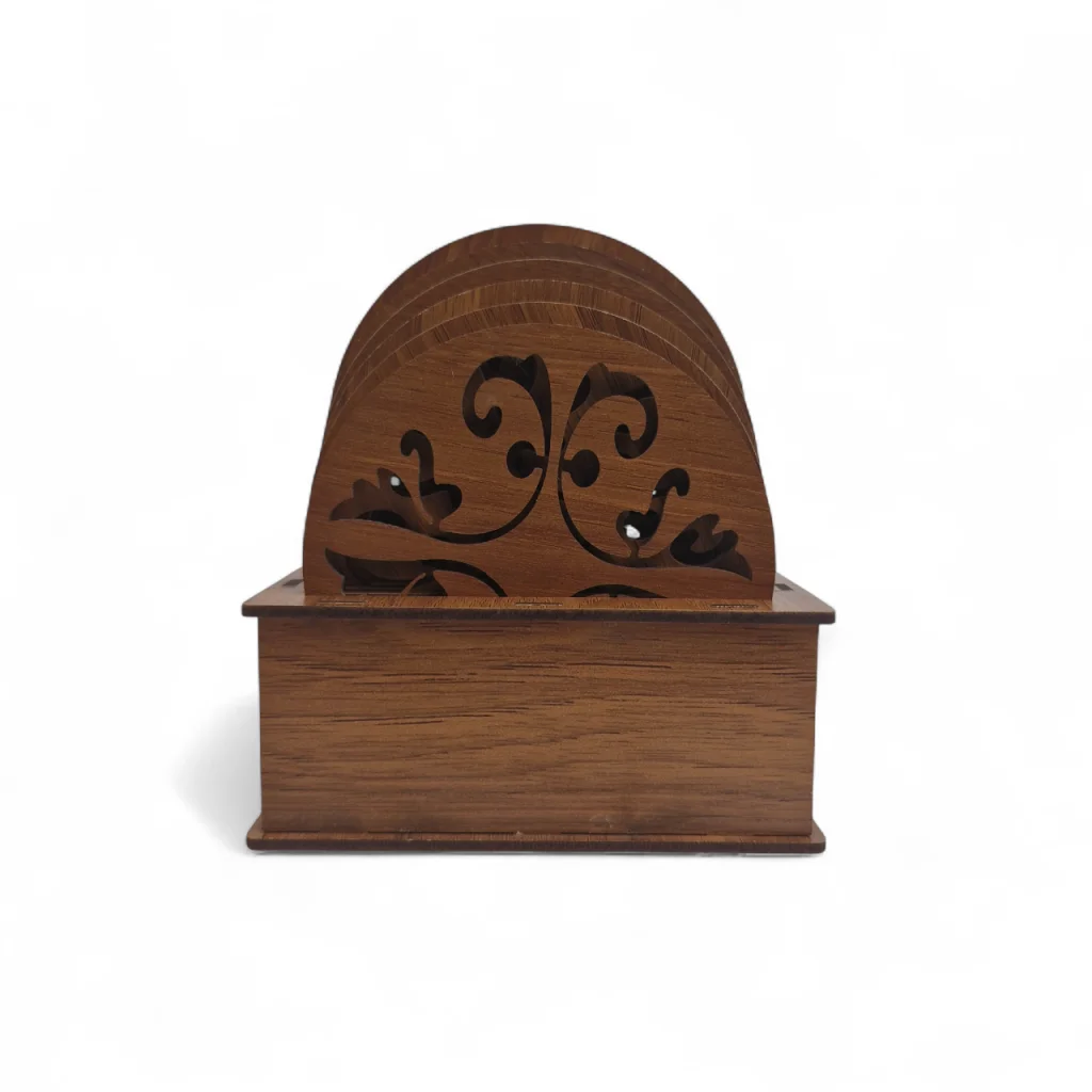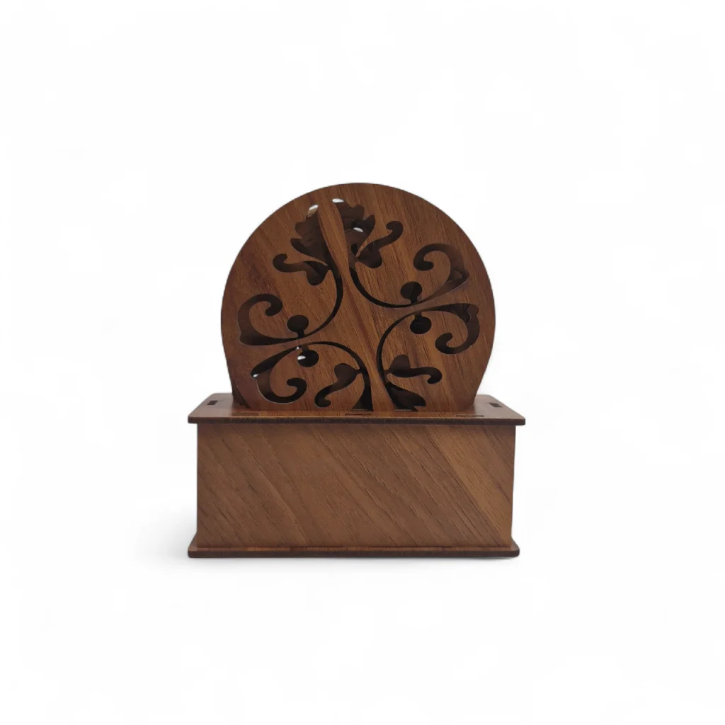 زیر لیوانی چوبی گرد طرح گل کد WD6366