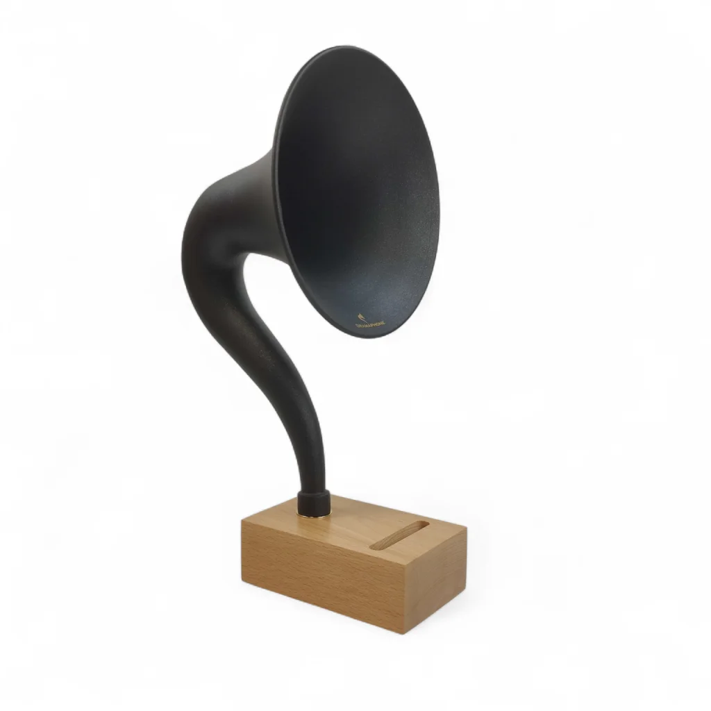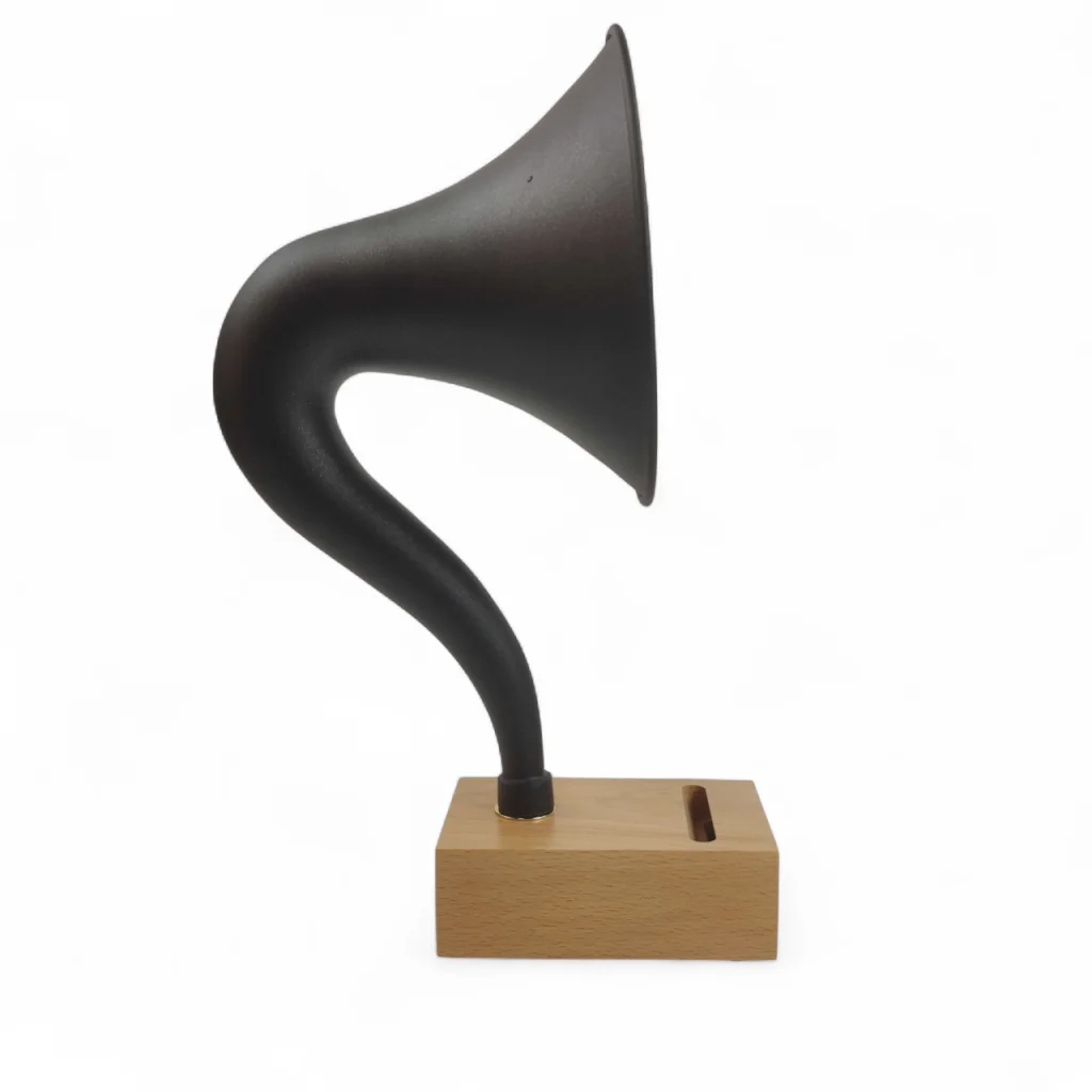 درامافون پایه مستطیل یک آمپلیفایر آکوستیک بدون نیاز به برق است که با الهام از گرامافونهای کلاسیک طراحی شده است. ترکیب شیپور مشکی و پایه چوبی مستطیل، ظاهری مدرن و درعینحال نوستالژیک ایجاد میکند. این محصول با تقویت طبیعی صدای گوشی، تجربهای متفاوت و لذتبخش از شنیدن موسیقی ارائه میدهد. شیپور زاویهدار آن صدا را بهخوبی پخش کرده و فضای اتاق را با طنین دلنشین پر میکند. این محصول یک انتخاب خاص برای دکور، هدیه و افزایش کیفیت شنیداری است.