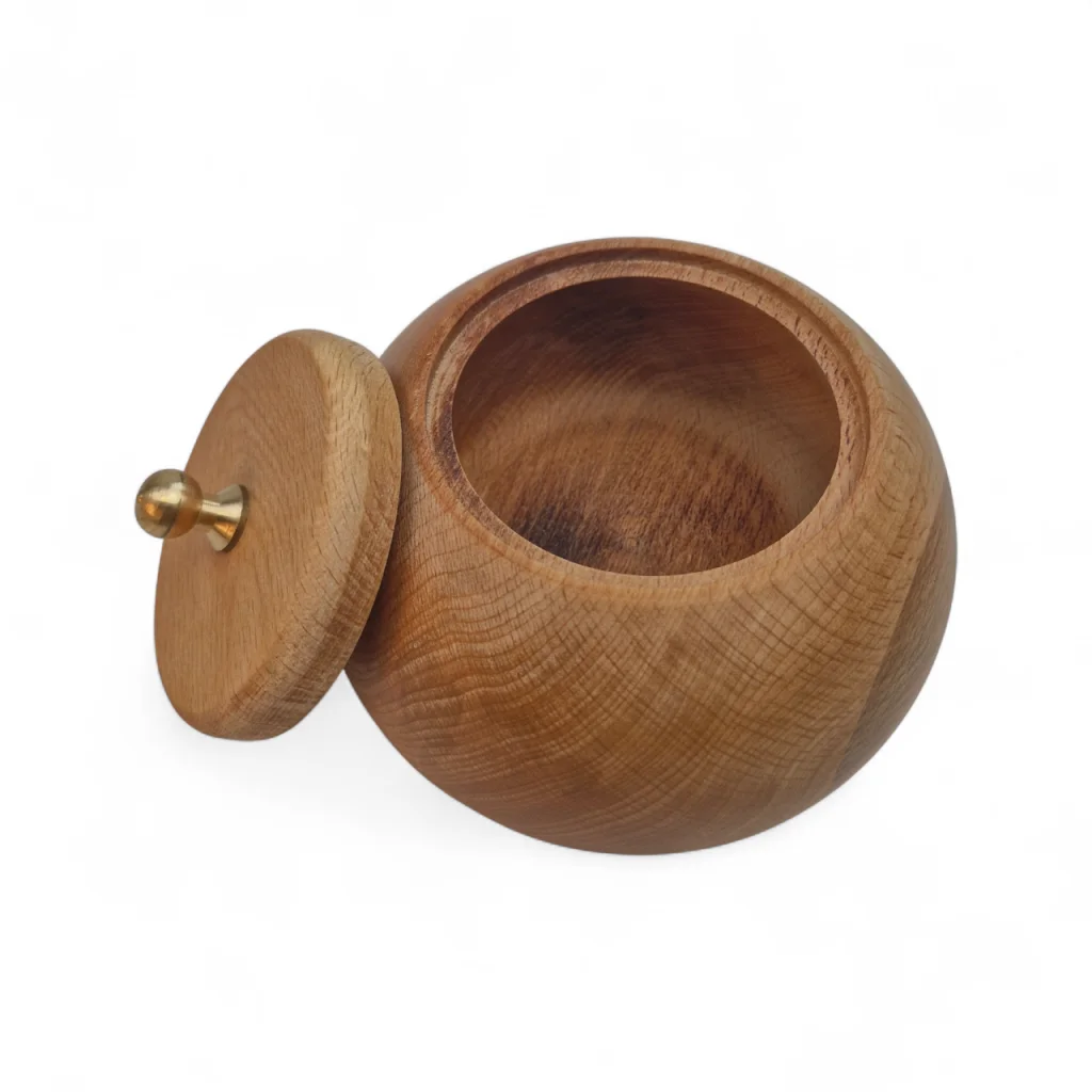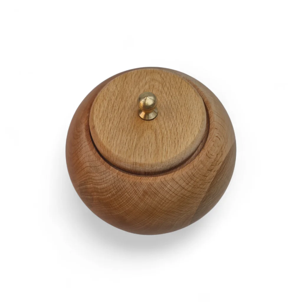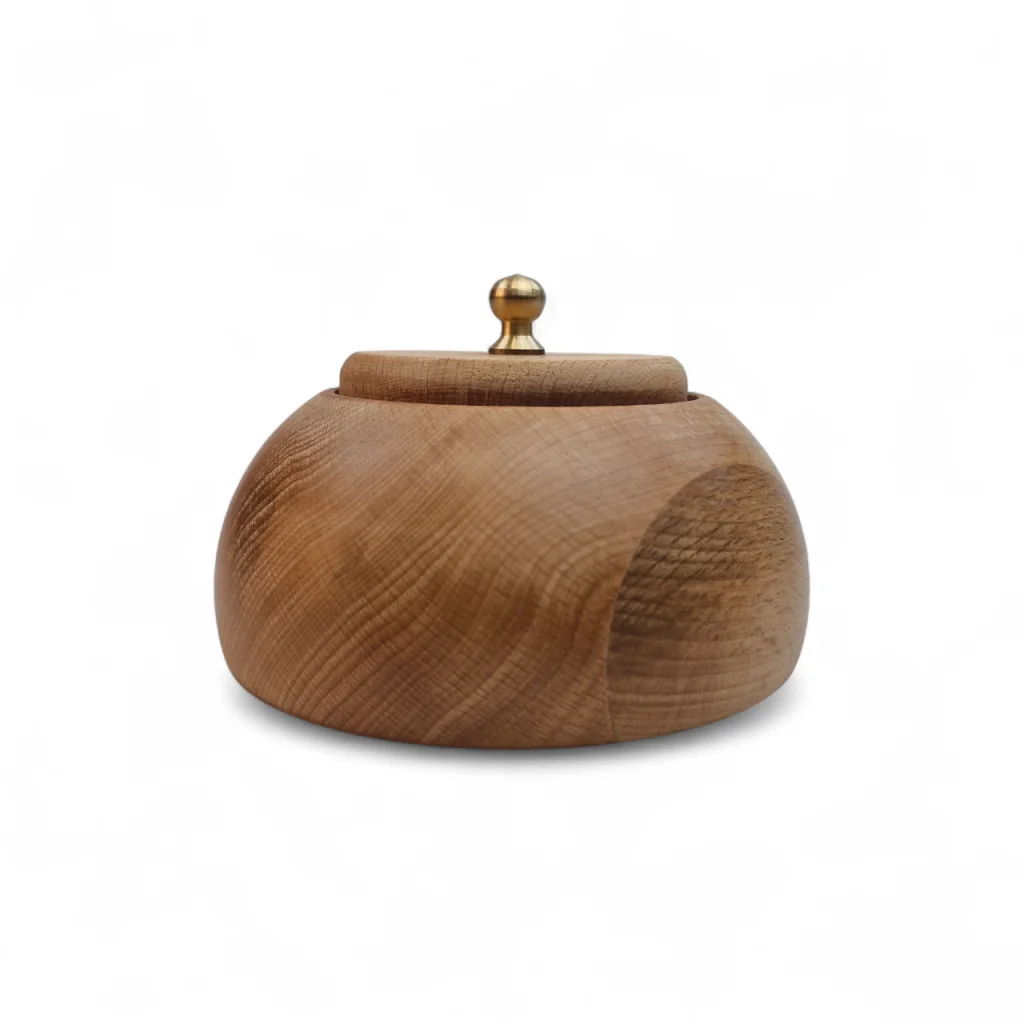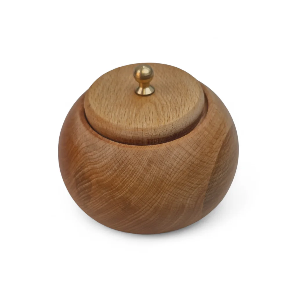 شکلاتخوری چوبی با درب، از جنس چوب راش و دسته از برنج، ترکیبی از گرمی چوب طبیعی و جلوهی لوکس فلز است. چوب راش به دلیل بافتی نرم اما مقاوم، حس طبیعی و دنجی به ظرف میبخشد؛ در حالی که دستههای برنجی تضاد ظریف و در عین حال درخشانی را ایجاد میکنند که آن را از یک ظرف ساده کاربردی به اثری دکوراتیو تبدیل میکند. درب آن از ورود گرد و غبار جلوگیری میکند و برای نگهداری شکلات، آجیل یا تنقلات بسیار مناسب است. این شکلاتخوری میتواند هم در مهمانیها بهعنوان ظرف پذیرایی و هم به عنوان تزئینی روی میز یا ویترین استفاده شود، و طراحی چوبیاش حس گرمی و صمیمیت را به دکور خانه اضافه میکند.