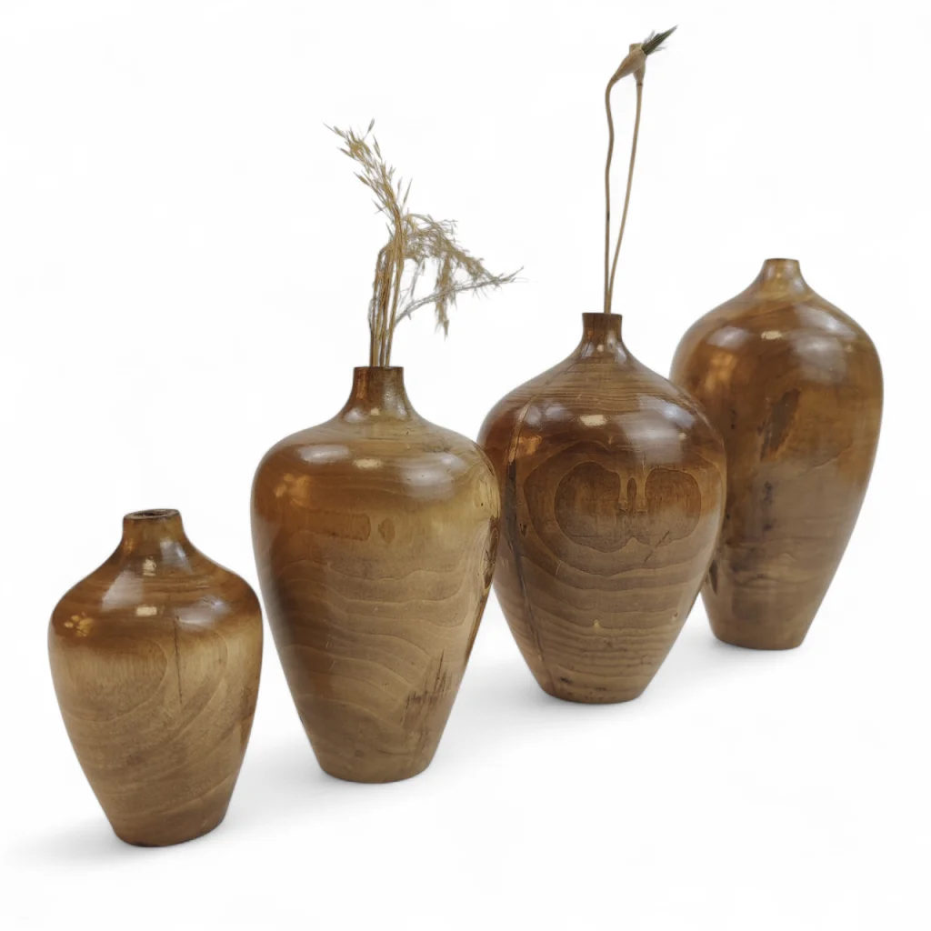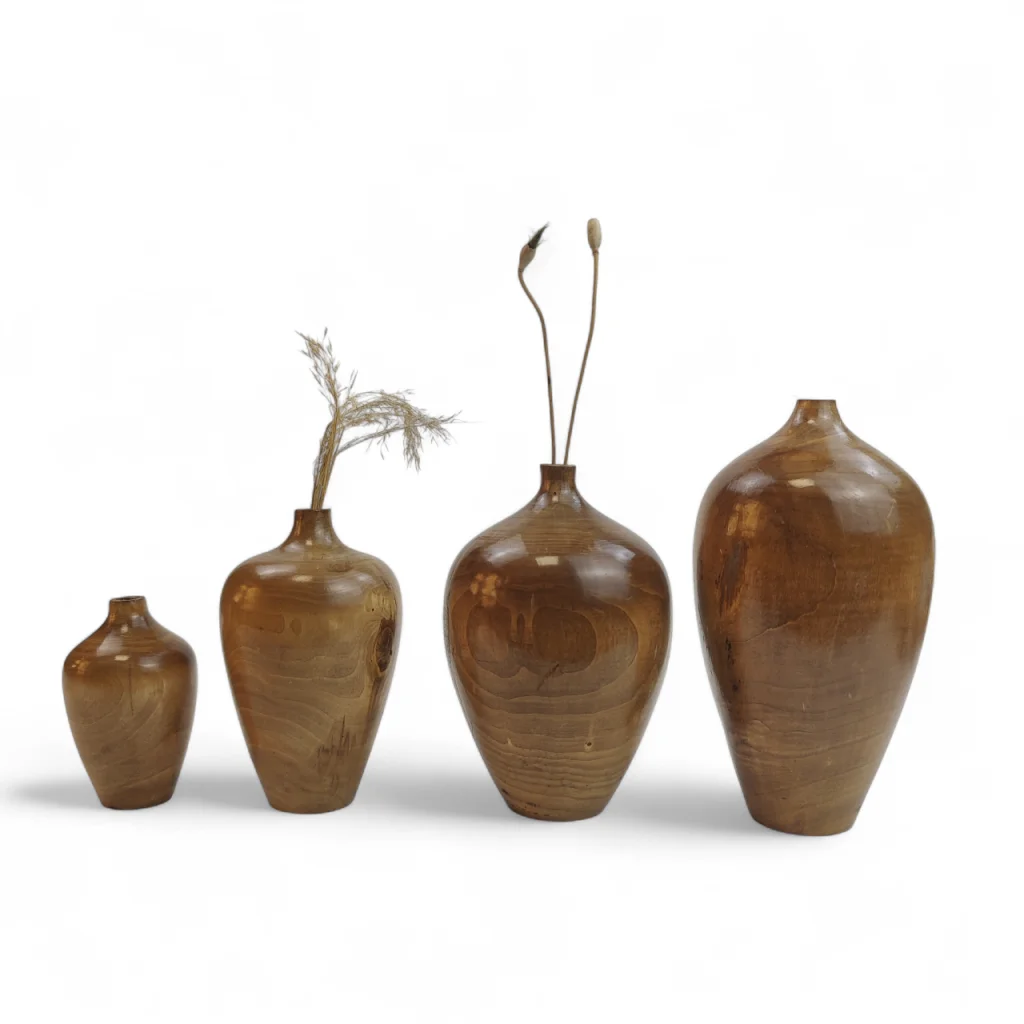 ست چهار تایی گلدان چوبی کوزه ای کد WD6308