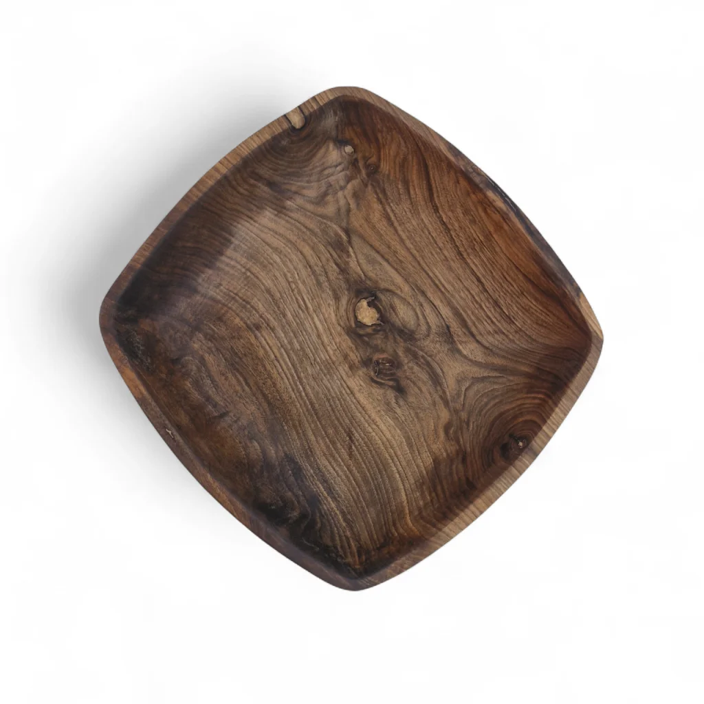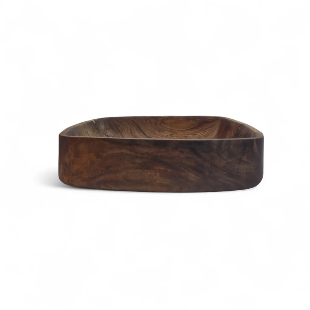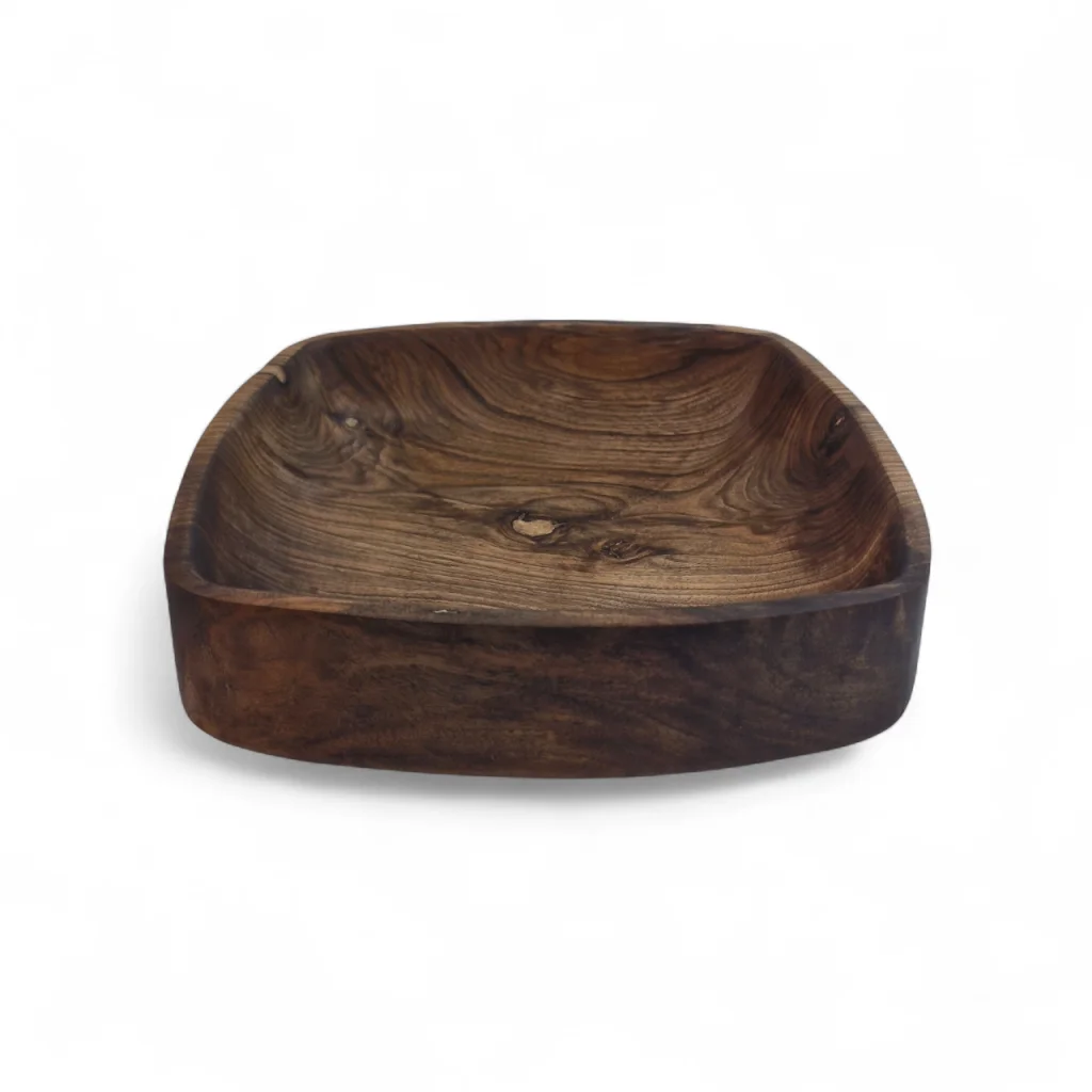 کاسه چوبی مربع از چوب گردو ترکیبی از طراحی ساده، طبیعی و لوکس است؛ با گوشههای نرم که بهصورت هندسی طراحی شدهاند و رنگ قهوهای گرم چوب گردو جلوهای بسیار باوقار به آن میبخشد. چوب گردو به دلیل تراکم بالا، دوام زیاد و بافت رگهدار، انتخابی ممتاز برای ظروف سرو است. این کاسه میتواند برای آجیل، میوه، دسر یا حتی استفاده دکوری استفاده شود؛ سطح آن ممکن است با روغن گیاهی پوشش داده شود تا مقاومت در برابر رطوبت افزایش یابد و زیبایی طبیعی چوب حفظ شود. طراحی مربع آن امکان چیدمان مرتبتر روی میز یا ویترین را فراهم میآورد و در عین حال حس مدرن و کلاسیک را تلفیق میکند.