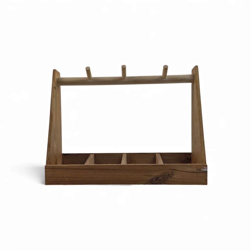 ستند جا ادویه چوبی با طراحی خلاقانه و الهامگرفته از سبک روستیک، علاوه بر نظمدهی به ادویهها، جلوهای گرم و طبیعی به آشپزخانه میبخشد. ترکیب محفظههای پایینی با آویزهای بالایی، دسترسی آسان و استفاده بهینه از فضا را فراهم کرده و آن را به گزینهای کاربردی و دکوراتیو تبدیل میکند.