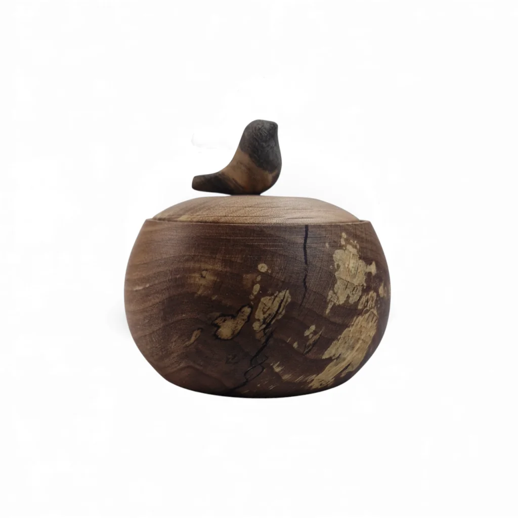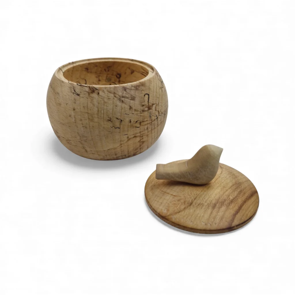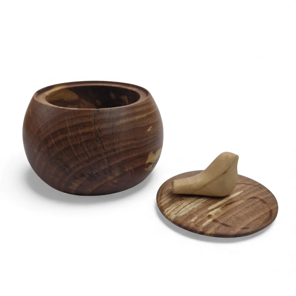 قندان چوبی با دربی مزین به یک پرنده کوچک چوبی، ترکیبی هنرمندانه از کاربرد و زیبایی است. این طراحی خاص با الهام از طبیعت، حس لطافت و صمیمیت را به میز پذیرایی میآورد و چوب طبیعی آن جلوهای گرم و اصیل به دکوراسیون میبخشد. درب قندان نیز به حفظ بهداشت و تازگی محتویات کمک میکند.