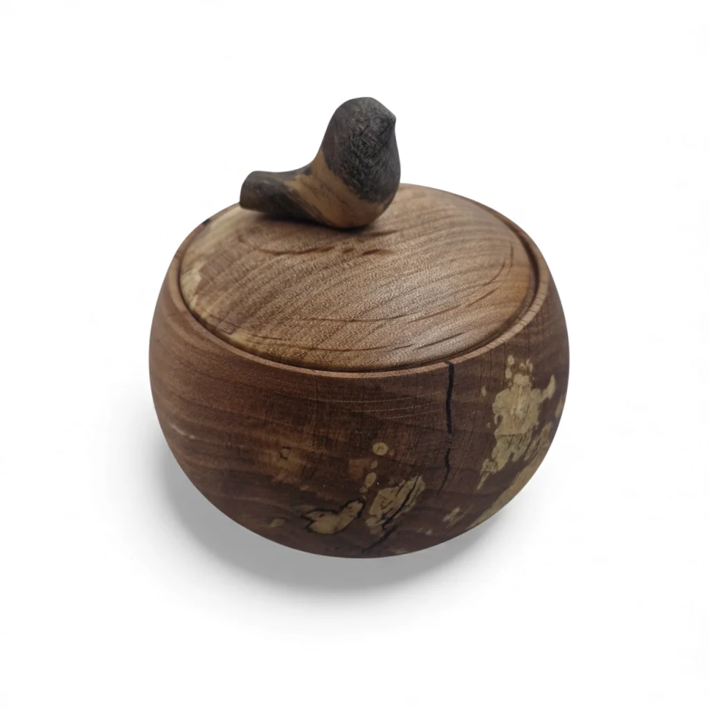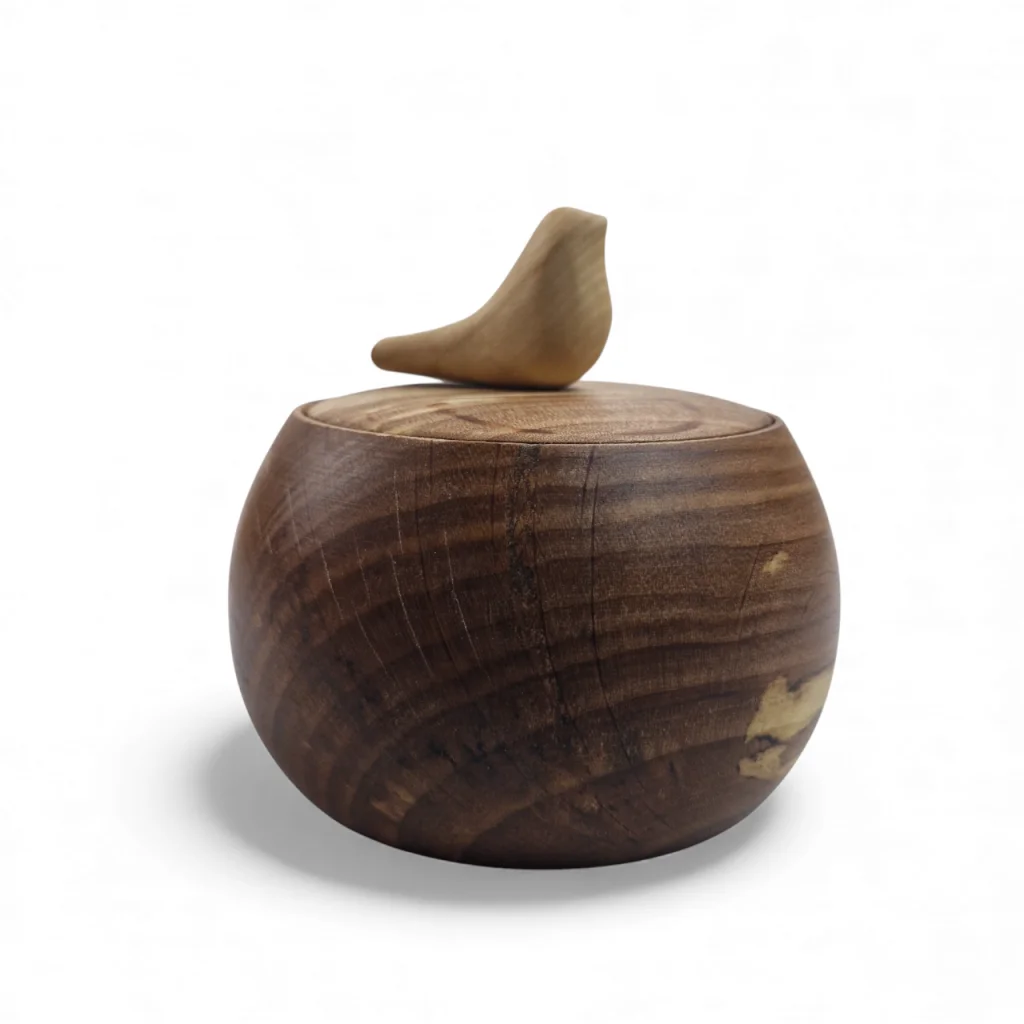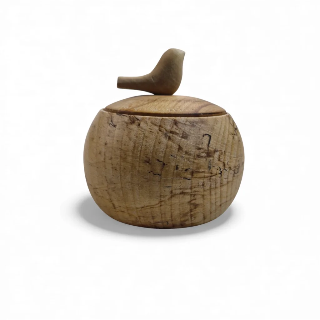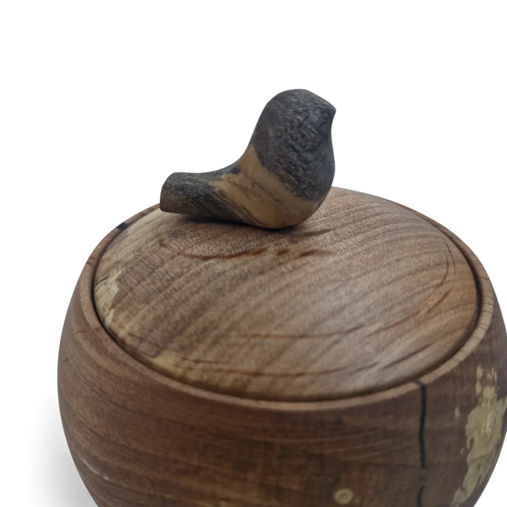 قندان چوبی با دربی مزین به یک پرنده کوچک چوبی، ترکیبی هنرمندانه از کاربرد و زیبایی است. این طراحی خاص با الهام از طبیعت، حس لطافت و صمیمیت را به میز پذیرایی میآورد و چوب طبیعی آن جلوهای گرم و اصیل به دکوراسیون میبخشد. درب قندان نیز به حفظ بهداشت و تازگی محتویات کمک میکند.