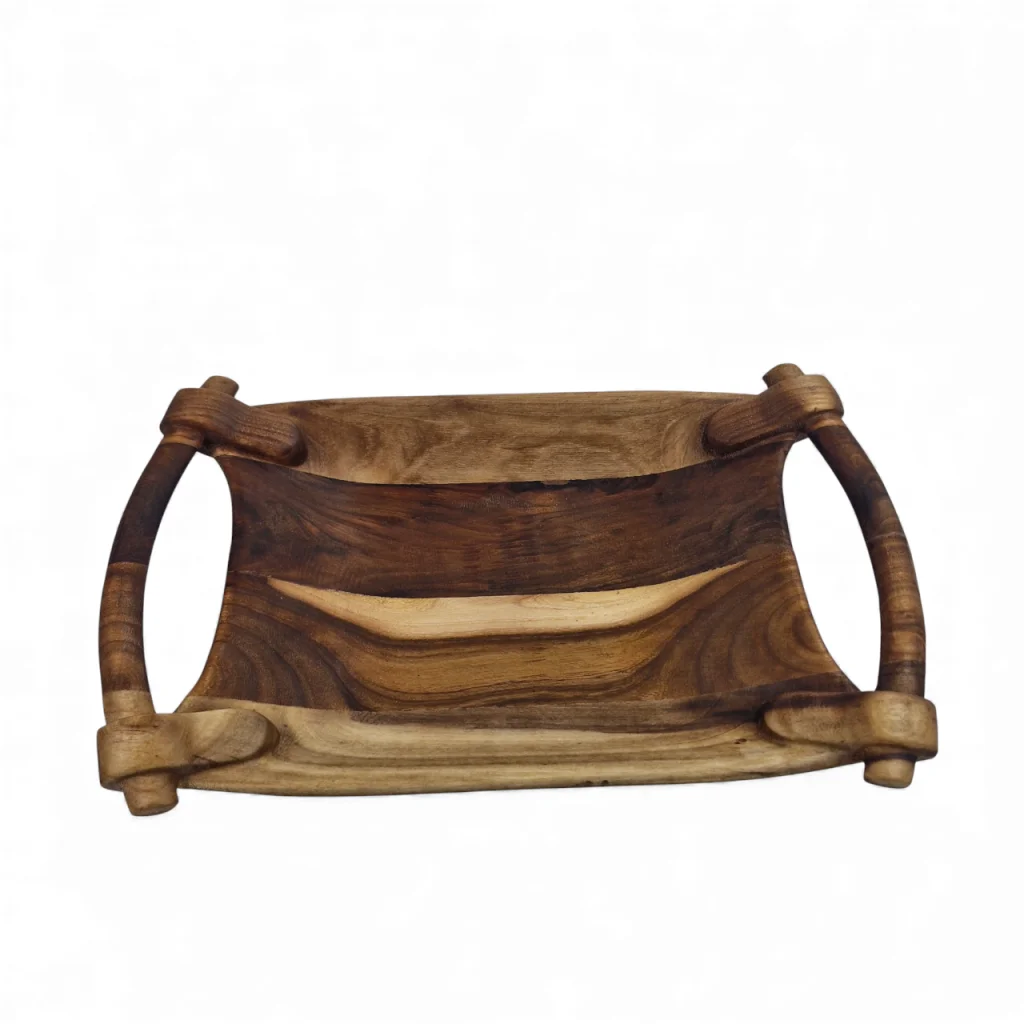 میوهخوری چوبی دستهدار با طراحی دستساز و الهامگرفته از فرمهای طبیعی، انتخابی زیبا برای سرو میوه و تنقلات است. رگههای طبیعی چوب در کنار دستههای خوشفرم، علاوهبر کاربردی بودن، جلوهای گرم و هنری به میز پذیرایی و دکور خانه میبخشد.