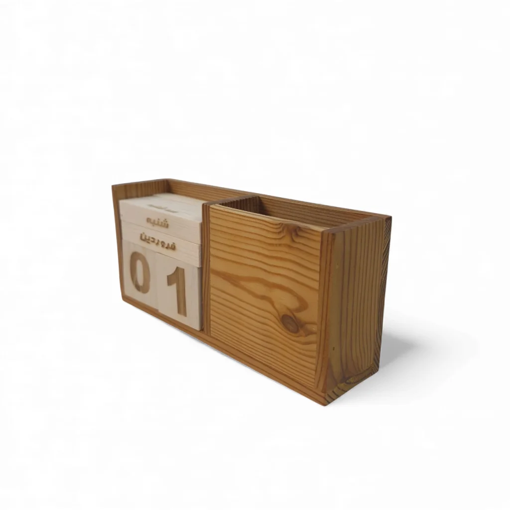 تقویم رومیزی چوبی با جای قلم