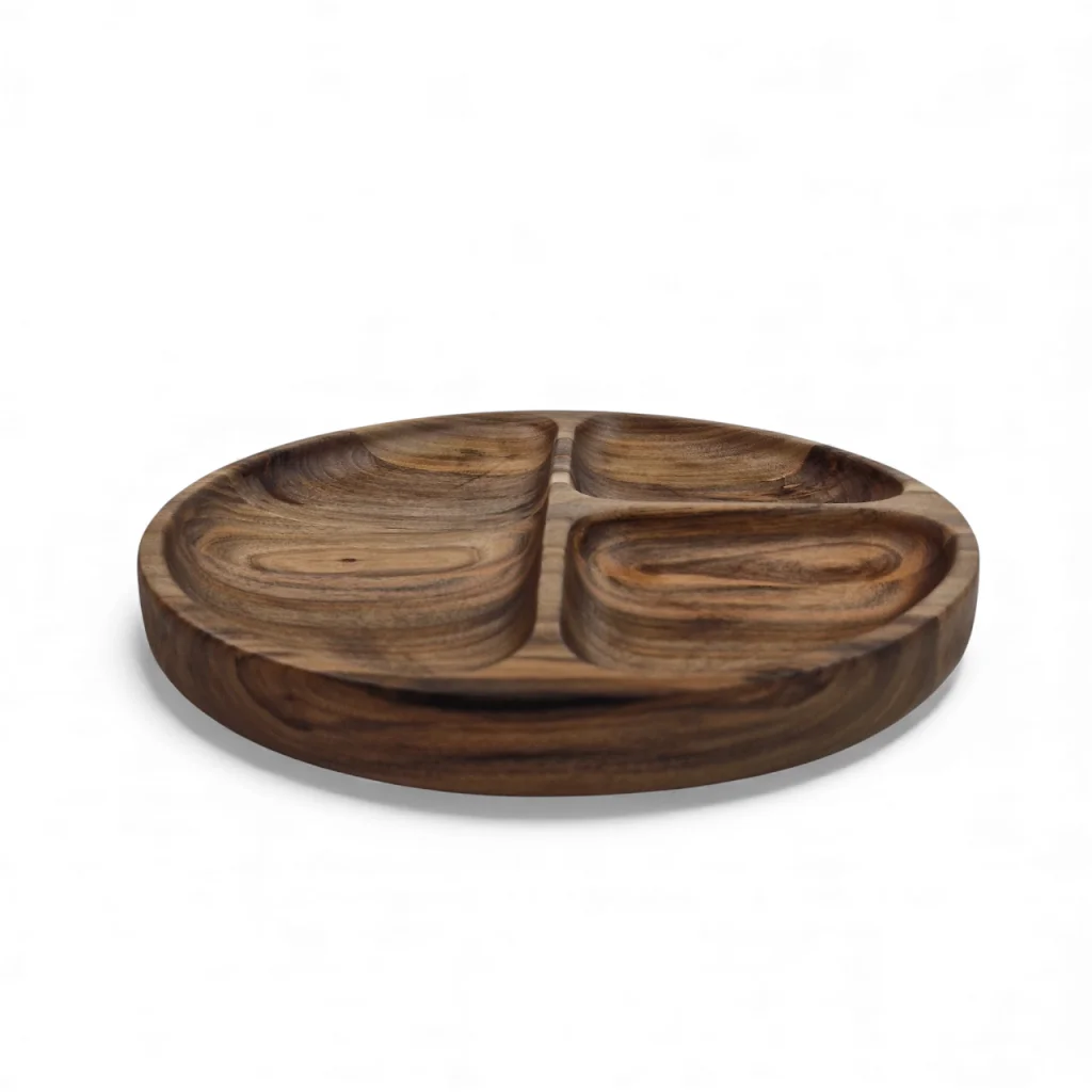 اردوخوری چوبی گرد ۳ خانه با طراحی ساده و زیبا، انتخابی کاربردی برای سرو تنقلات، مزه و خوراکیهاست. تقسیمبندی سهخانه امکان چیدمان منظم و دسترسی راحت به خوراکیها را فراهم میکند. فرم گرد محصول جلوهای هماهنگ و دلنشین به میز پذیرایی اضافه میکند. استفاده از چوب باکیفیت، دوام بالا و حس طبیعی و گرمی را به محصول داده است. این ظرف گزینهای مناسب برای استفاده روزمره، مهمانیها و هدیهای شیک و کاربردی محسوب میشود.