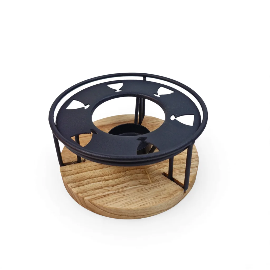 وارمر چوب و فلز گرد با طراحی ساده و شیک، گزینهای مناسب برای گرم نگه داشتن نوشیدنیها یا خوراکیها در میز پذیرایی است. ترکیب چوب و فلز دوام بالا و جلوهای طبیعی و مدرن به محصول بخشیده است. فرم گرد آن استفاده آسان و هماهنگی با ظروف مختلف را ممکن میکند. این وارمر برای مهمانیها، استفاده روزمره و سرو نوشیدنیهای گرم ایدهآل است. این وارمر قوری انتخابی کاربردی و دکوری برای میز و هدیهای ماندگار محسوب میشود.