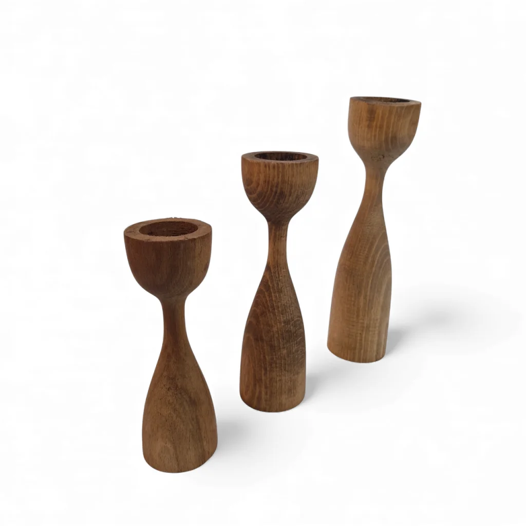 ست شمعدان سهتایی چوبی با طراحی زیبا و هماهنگ، جلوهای شیک و دکوری به میز، شلف یا ویترین میبخشد. بدنه چوبی باکیفیت حس طبیعی و گرمی به فضا اضافه کرده و دوام بالای محصول را تضمین میکند. این ست سهتایی امکان ایجاد فضایی متقارن و زیبا برای قرار دادن شمعها را فراهم میکند. طراحی مینیمال و جمعوجور آن با انواع دکورهای داخلی هماهنگ است. این محصول انتخابی ایدهآل برای استفاده روزمره، مراسم و هدیهای شیک و ماندگار محسوب میشود.