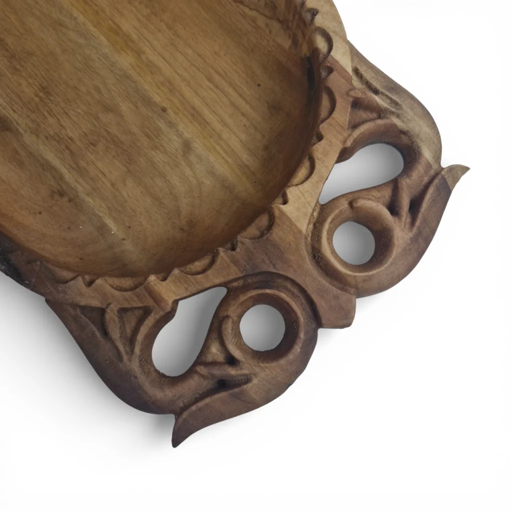اردو دستهدار منبت طوبی با طراحی ظریف و منبتکاری هنرمندانه، جلوهای اصیل و چشمنواز به میز پذیرایی میبخشد. نقشهای حکاکیشده در اطراف ظرف، زیبایی و ظرافت کار دست را بهخوبی نشان میدهد. دستههای یکپارچه و مقاوم، جابهجایی و سرو انواع تنقلات، مزه و شیرینی را آسان میکند. رنگ طبیعی چوب و بافت گرم آن حس صمیمیت و کیفیت را منتقل میکند. این محصول انتخابی کاربردی و دکوراتیو برای مهمانیها و دورهمیهای خاص است.