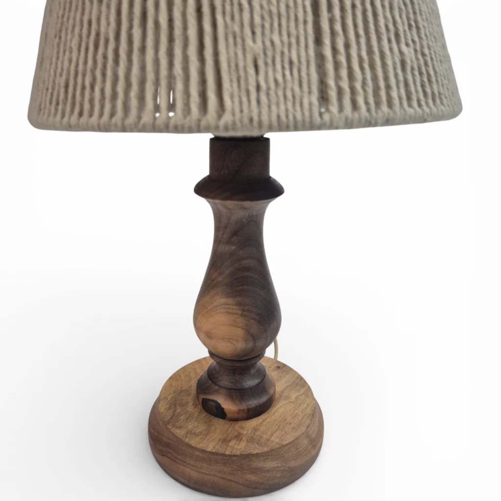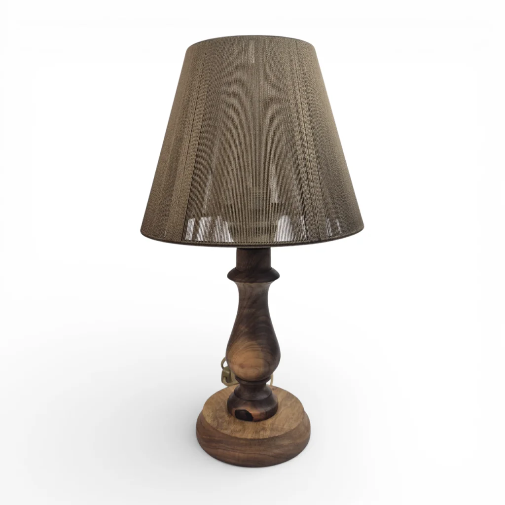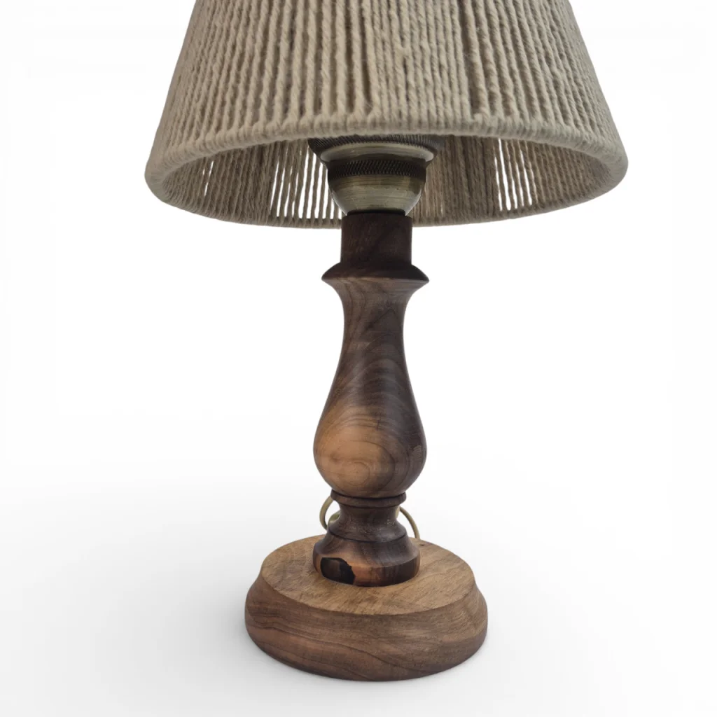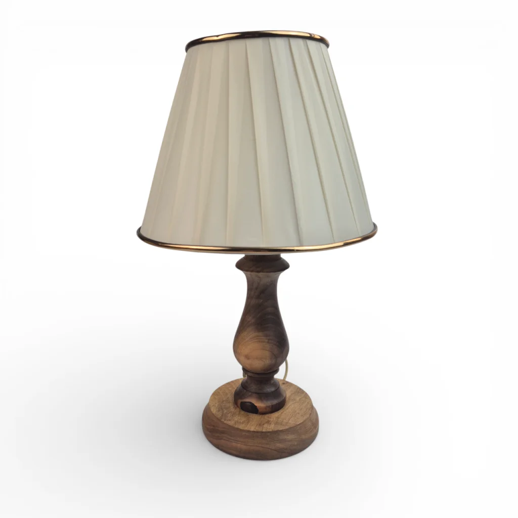 آباژور شمعدان! شباهت پایه چوبی محصول به شمعدان باعث شده که به این اسم شناخته شود. همکاران ما در کارخانه تک سازان ترنج با استفاده از بهترین چوب گردو و با پوشش روغن گیاهی این محصول جذاب و در تیراژ بالا تولید می کنند. شید آباژور از جنس پارچه و در 4 طرح موجود است که به سلیقه شما ارسال می شود. اقلام برقی مصرف شده (سیم, سرپیچ,کلید و...) از بهترین متریال موجود در بازار استفاده شده است. ارتفاع پایه 26سانتی متر، قطر تنه 9سانتیمتر, قطر شید 23سانتی متر و ارتفاع شید 17سانتی متر است همچنین ارتفاع کلی محصول پایه با شید 39سانتی متر می شود که با احتساب همه این موارد وزن نهایی محصول 1160گرم است. طول سیم120 سانتی متر که در مسیر سیم کلید پاور قرار گرفته است , منبع تغدیه آن برق شهری 220 ولت است.