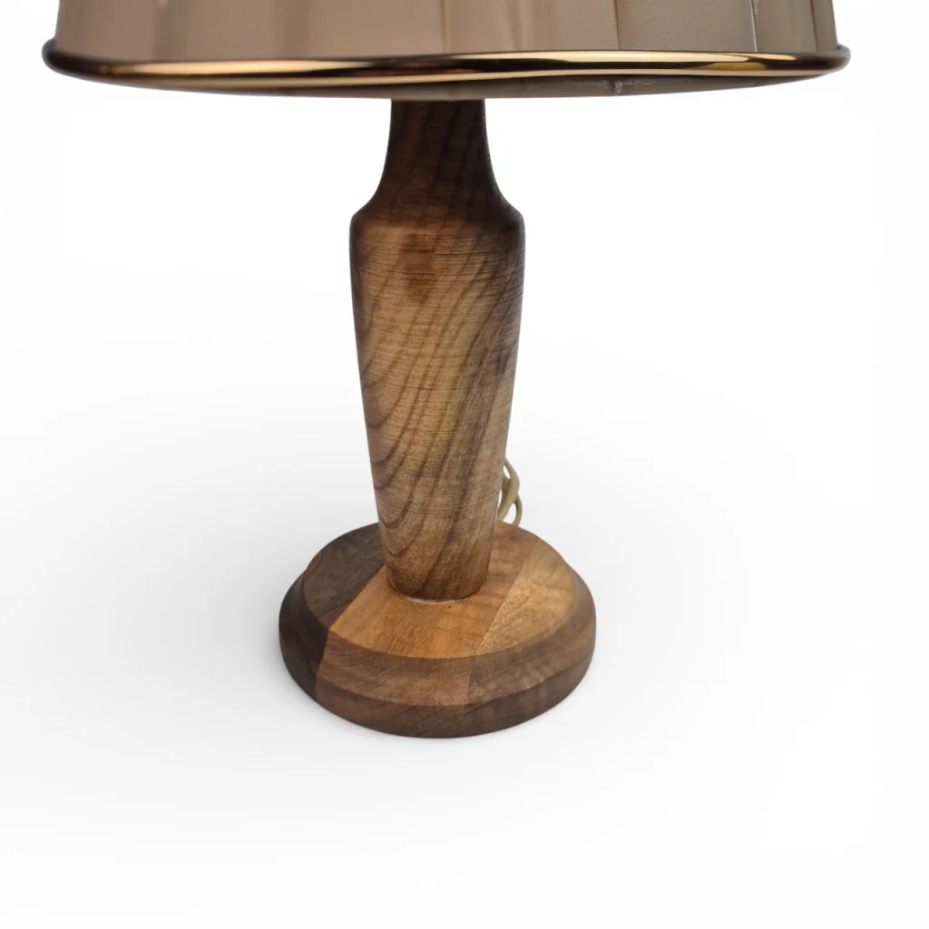 آباژور گلدانی! شباهت پایه چوبی محصول به گلدان باعث شده که به این اسم شناخته شود. همکاران ما در کارخانه تک سازان ترنج با استفاده از بهترین چوب گردو و با پوشش روغن گیاهی این محصول جذاب و در تیراژ بالا تولید می کنند. شید آباژور از جنس پارچه و در 4 طرح موجود است که به سلیقه شما ارسال می شود. اقلام برقی مصرف شده (سیم, سرپیچ,کلید و...) از بهترین متریال موجود در بازار استفاده شده است. ارتفاع پایه 26سانتی متر، قطر تنه 9سانتیمتر, قطر شید 23سانتی متر و ارتفاع شید 17سانتی متر است همچنین ارتفاع کلی محصول پایه با شید 39سانتی متر می شود که با احتساب همه این موارد وزن نهایی محصول 1160گرم است. طول سیم120 سانتی متر که در مسیر سیم کلید پاور قرار گرفته است , منبع تغدیه آن برق شهری 220 ولت است.
