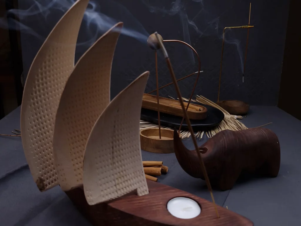 اگر فضای شما محدود است، جاعودی روستیک خوابیده گزینهای ایدهآل است. این مدل، با طراحی افقی و طول ۲۰ تا ۴۰ سانتیمتر، از الوارهای ناهموار چوب walnut یا pine ساخته میشود و مانند یک شاخه خوابیده عمل میکند. سوراخهای متعدد در سطح آن، امکان سوزاندن چند عود همزمان را فراهم میآورد، که برای مدیتیشن یا یوگا در خانه عالی است. در محل کار، روی میز مدیریت یا کنج اتاق، این جاعودی چوبی حس آرامش ایجاد میکند بدون اینکه فضا را اشغال کند.