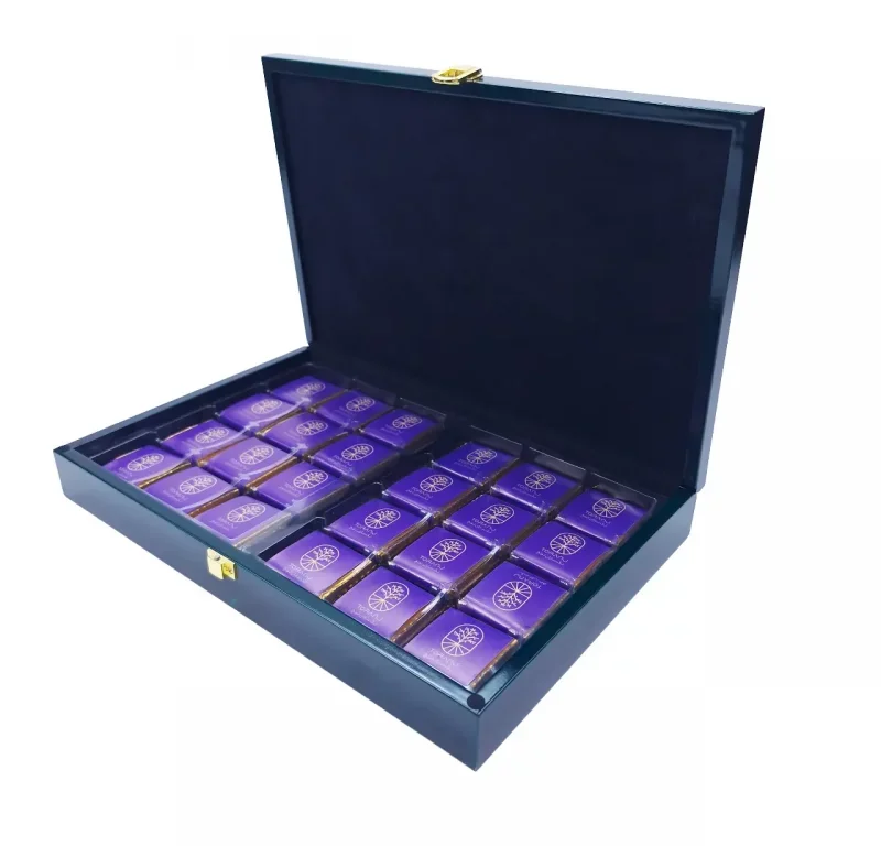 پک شکلات روشا با جعبه چوبی، یکی از لوکسترین گزینههای هدیه شب یلدا در سال ۱۴۰۴ است. این پک شامل جعبه چوبی با روکش راش، حاوی شکلاتهای با کیفیت با طعمهای متنوع (تلخ، شیرین و مغزدار) است. جعبه چوبی شب یلدا با ابعاد مناسب (28×16×9 سانتیمتر) و داخل مخملی، ظاهری شیک دارد و برای سرو شکلات در دورهمیهای یلدا ایدهآل است. این پک، به عنوان هدیه شب یلدا، حس شیرینی و شادی را منتقل میکند و با حک پیام تبریک، به هدایای تبلیغاتی شب یلدا تبدیل میشود. ترنج گیفت این پک را با کیفیت بالا و طراحیهای فرهنگی ارائه میدهد که برای خانوادهها و شرکتها مناسب است.