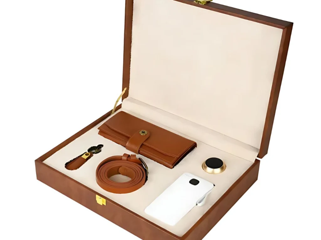 - پک هدیه چرم: شامل کیفهای کوچک، دفترچه یادداشت یا کیف کارت با لوگوی برند شما.
